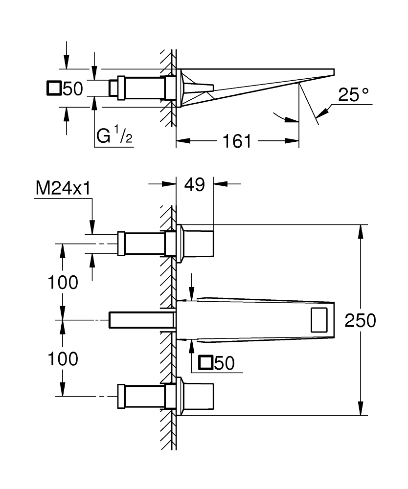 - Opbouwhoogte onderkant kraanmondstuk: 0 mm