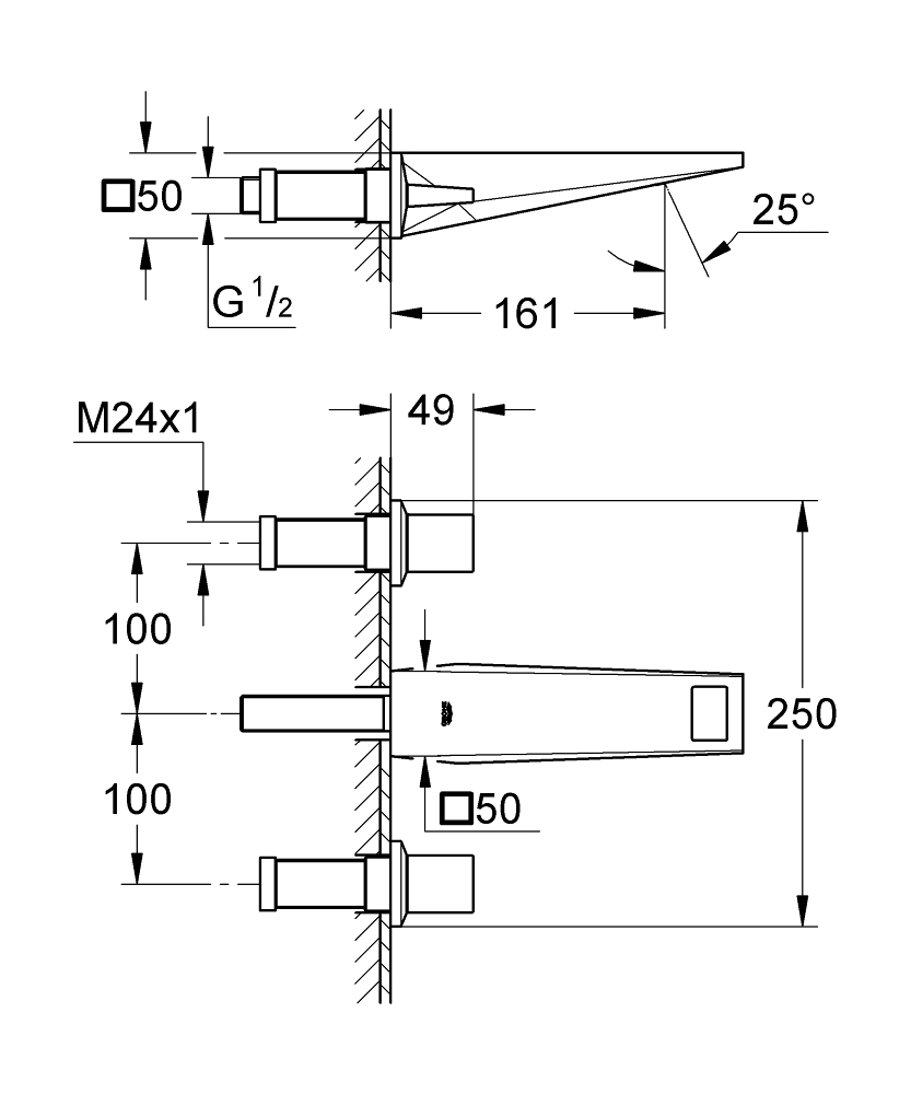 Allure brilliant 3-gats wandmengkraan 172mm chroom excl. inbouwdeel (Spa colors coll.) Grohe