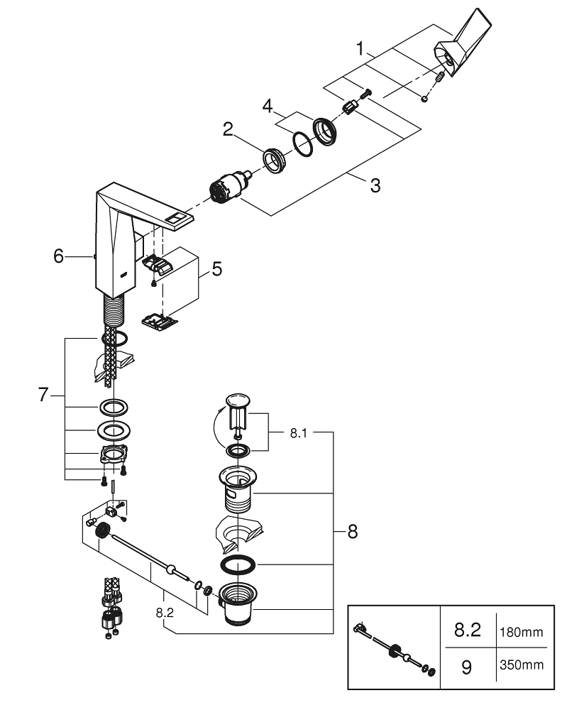 - Opbouwhoogte onderkant kraanmondstuk: 201 mm