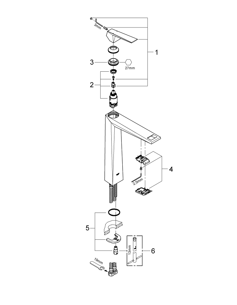 - Opbouwhoogte onderkant kraanmondstuk: 273 mm