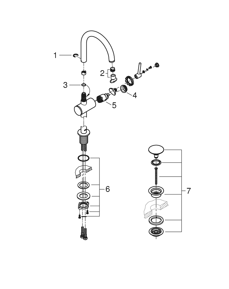 - Opbouwhoogte onderkant kraanmondstuk: 202 mm