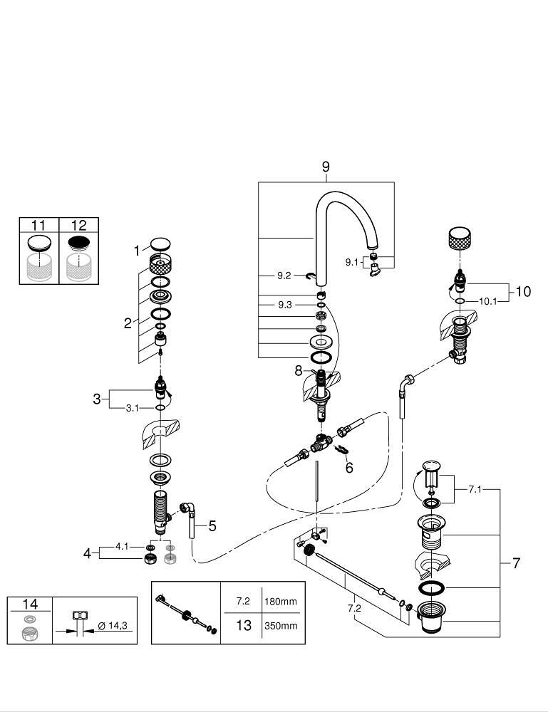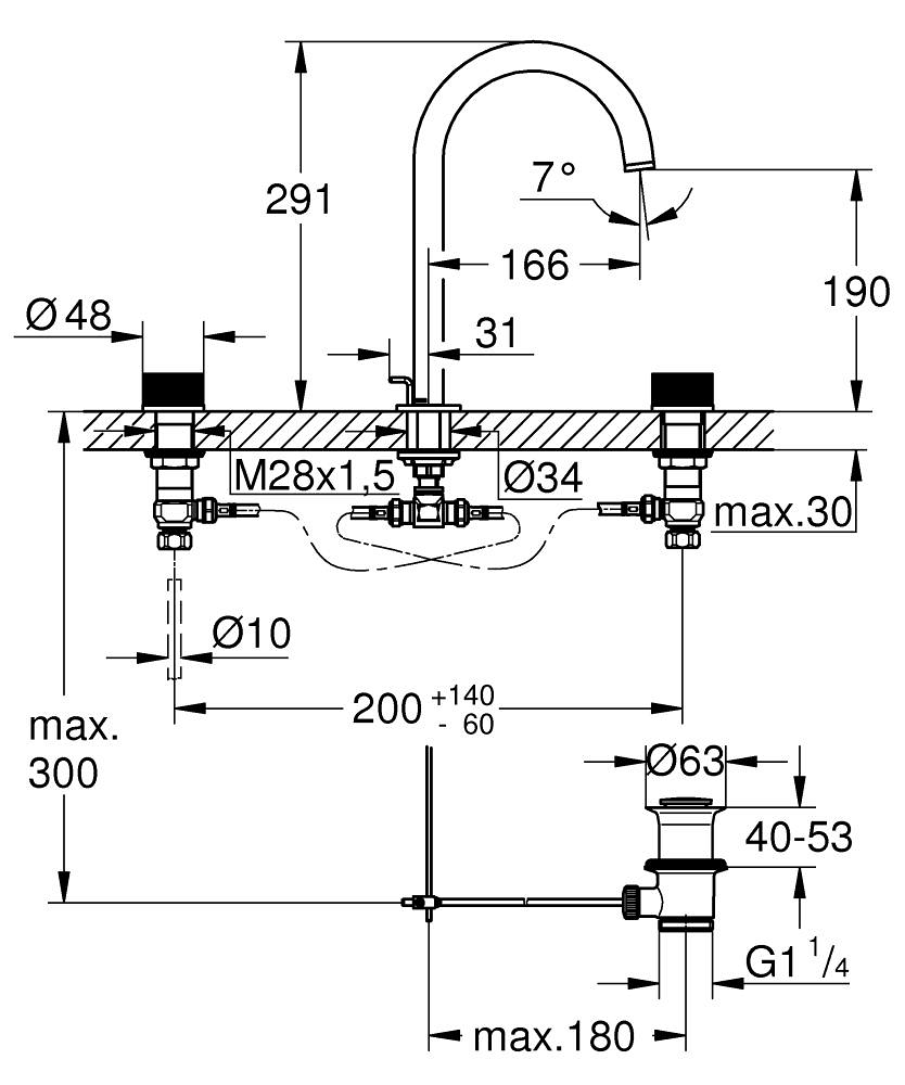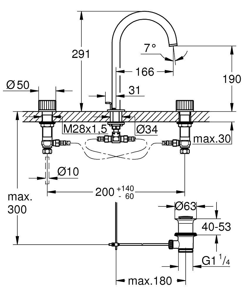 - Opbouwhoogte onderkant kraanmondstuk: 190 mm