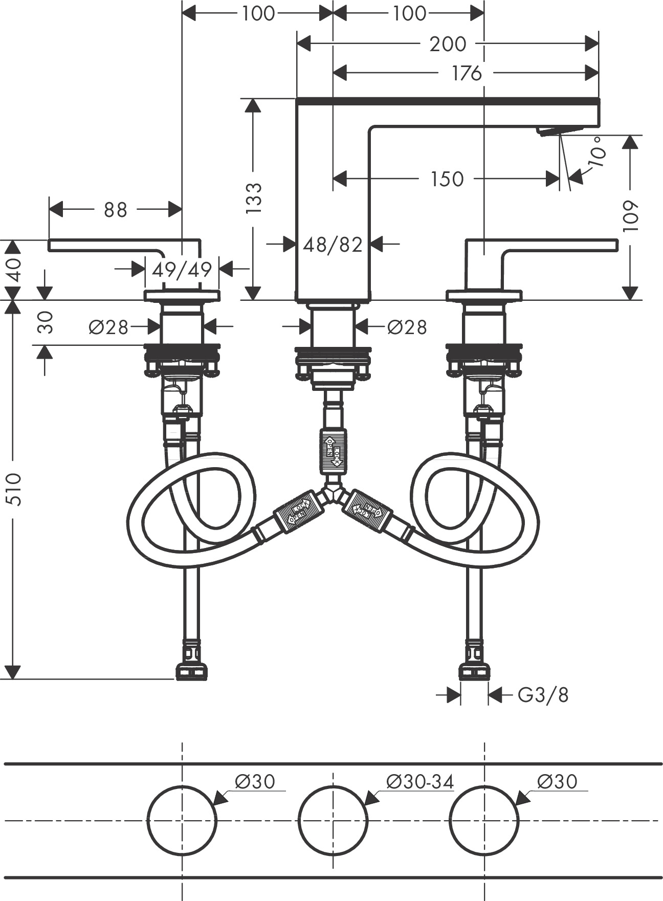 AXOR MyEdition 3-gats wastafelmengkraan 110 met Push-Open mat zwart/zwart glas hansgrohe