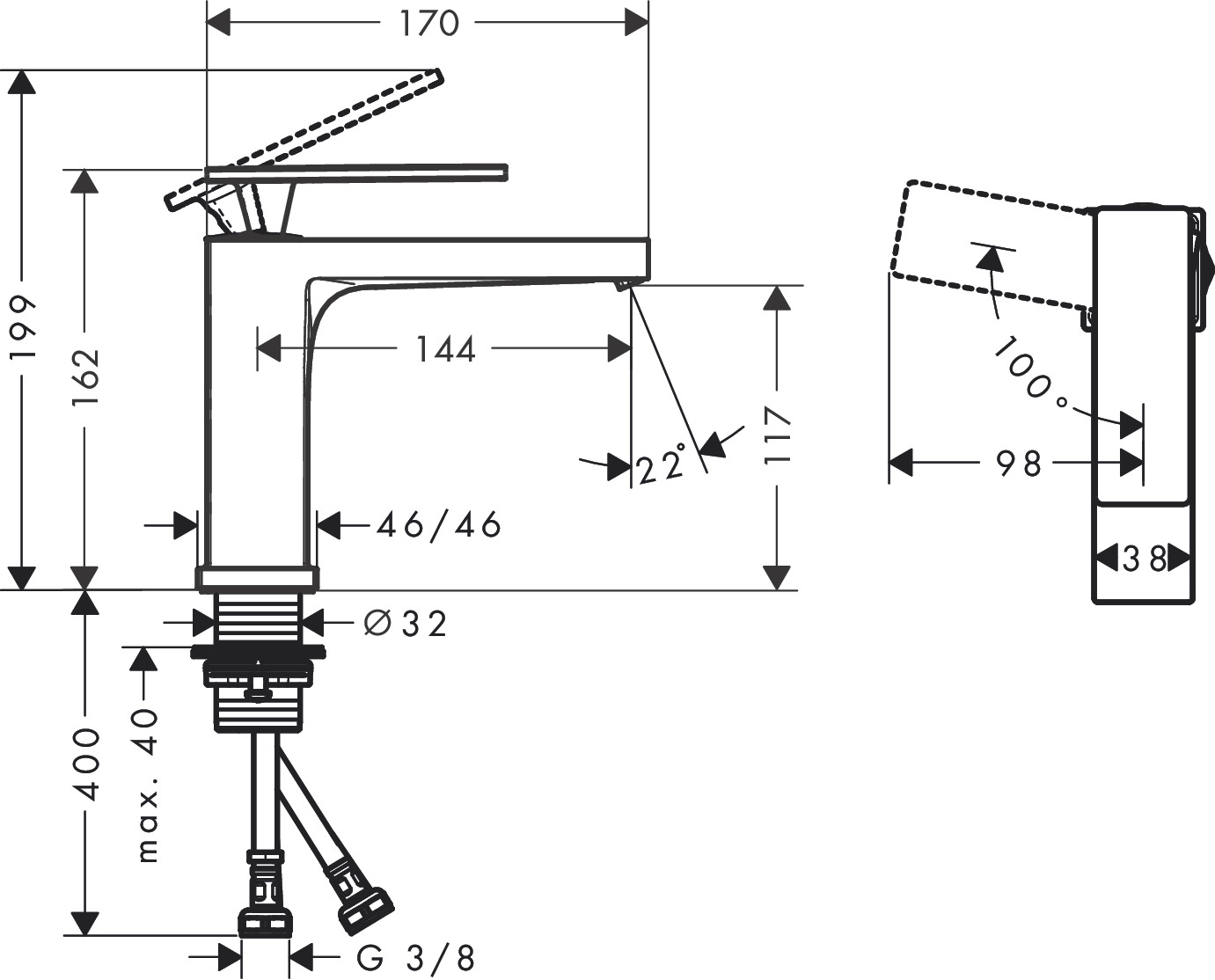 - Opbouwhoogte onderkant kraanmondstuk: 110 mm