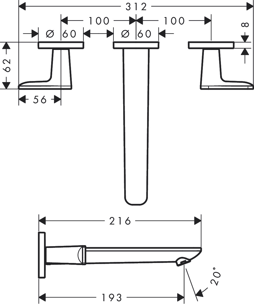 - Opbouwhoogte onderkant kraanmondstuk: 0 mm