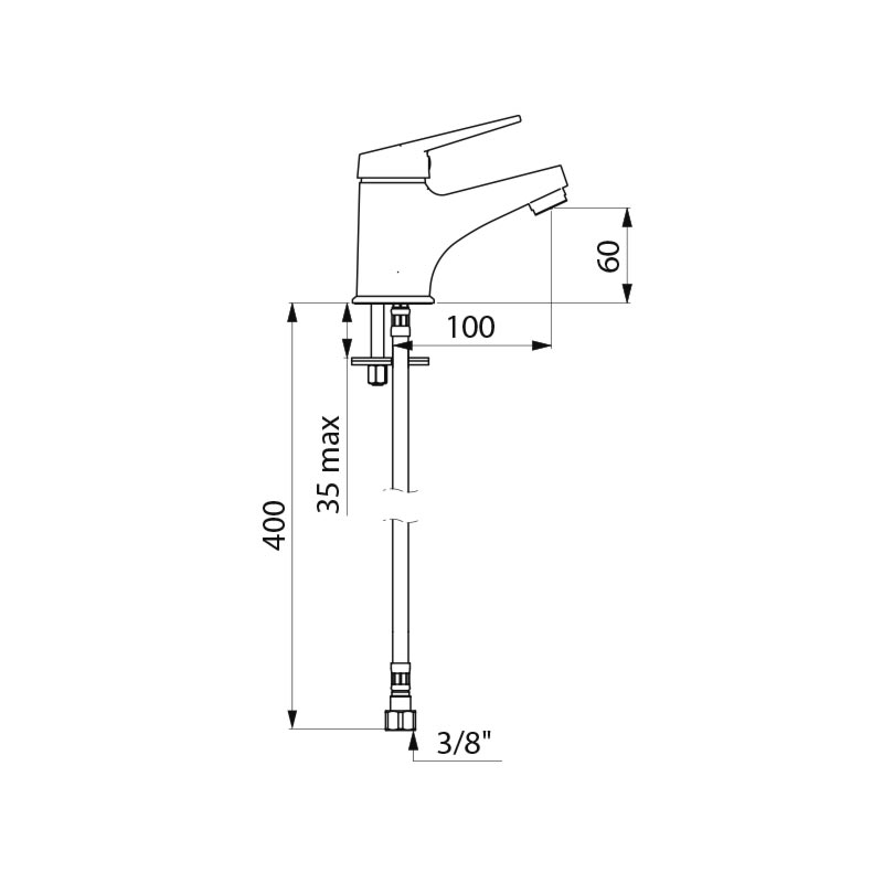 - Opbouwhoogte onderkant kraanmondstuk: 60 mm