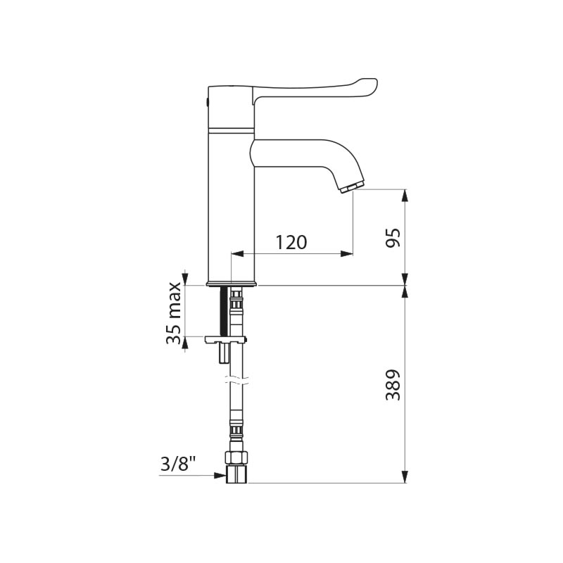 - Opbouwhoogte onderkant kraanmondstuk: 95 mm