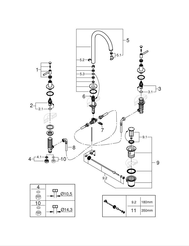 - Opbouwhoogte onderkant kraanmondstuk: 190 mm