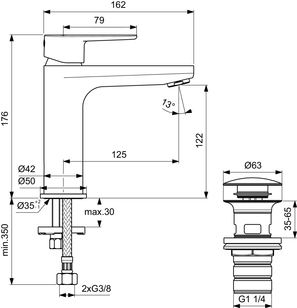 - Opbouwhoogte onderkant kraanmondstuk: 122 mm