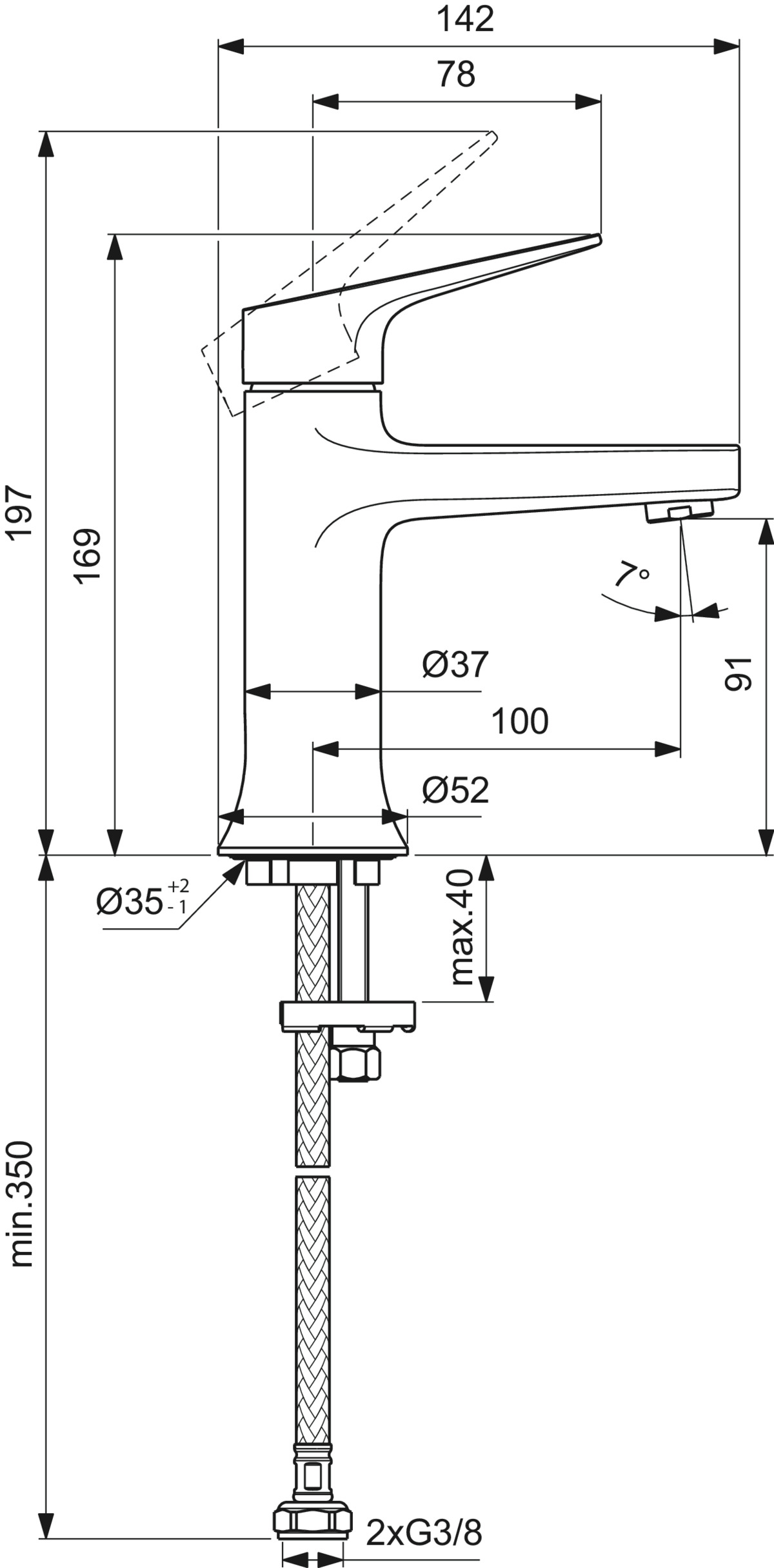 - Opbouwhoogte onderkant kraanmondstuk: 91 mm