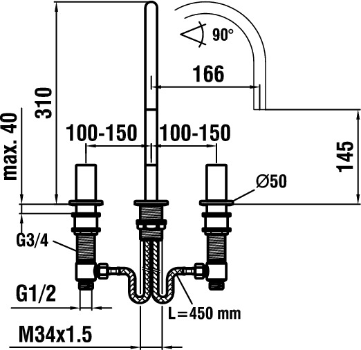 2Hendel 3Gaten Wastafelmengkraan PU waste PVD br.stai.steel Laufen