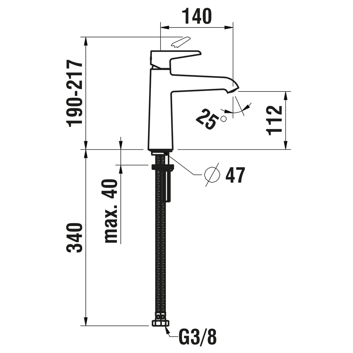 • Maat aansluiting aanvoer: 3/8" (10)