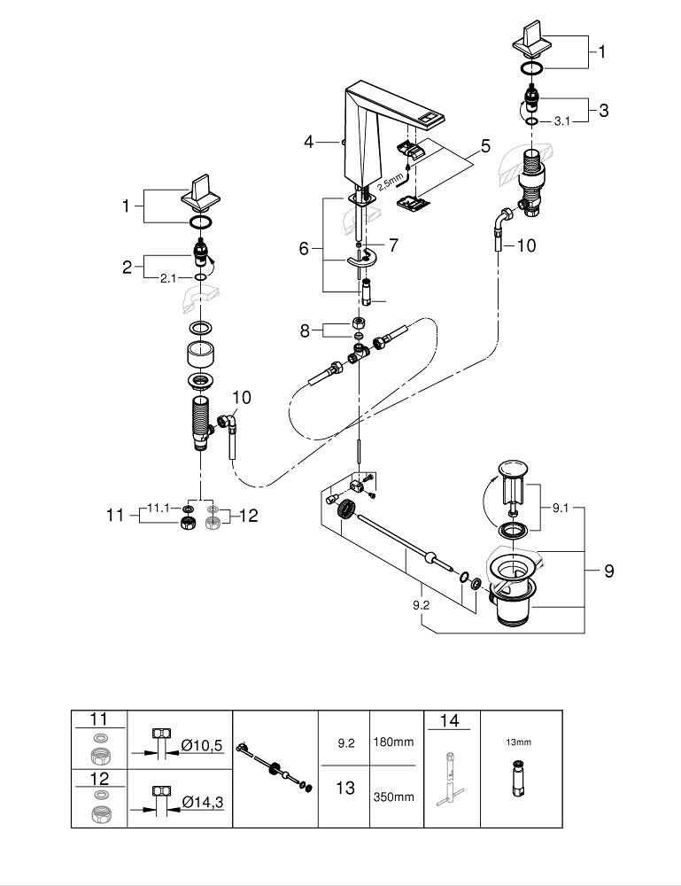 Allure Brilliant Private Collection M-Size 3-Gats Wastafelmengkraan White Attica Graphite Grohe