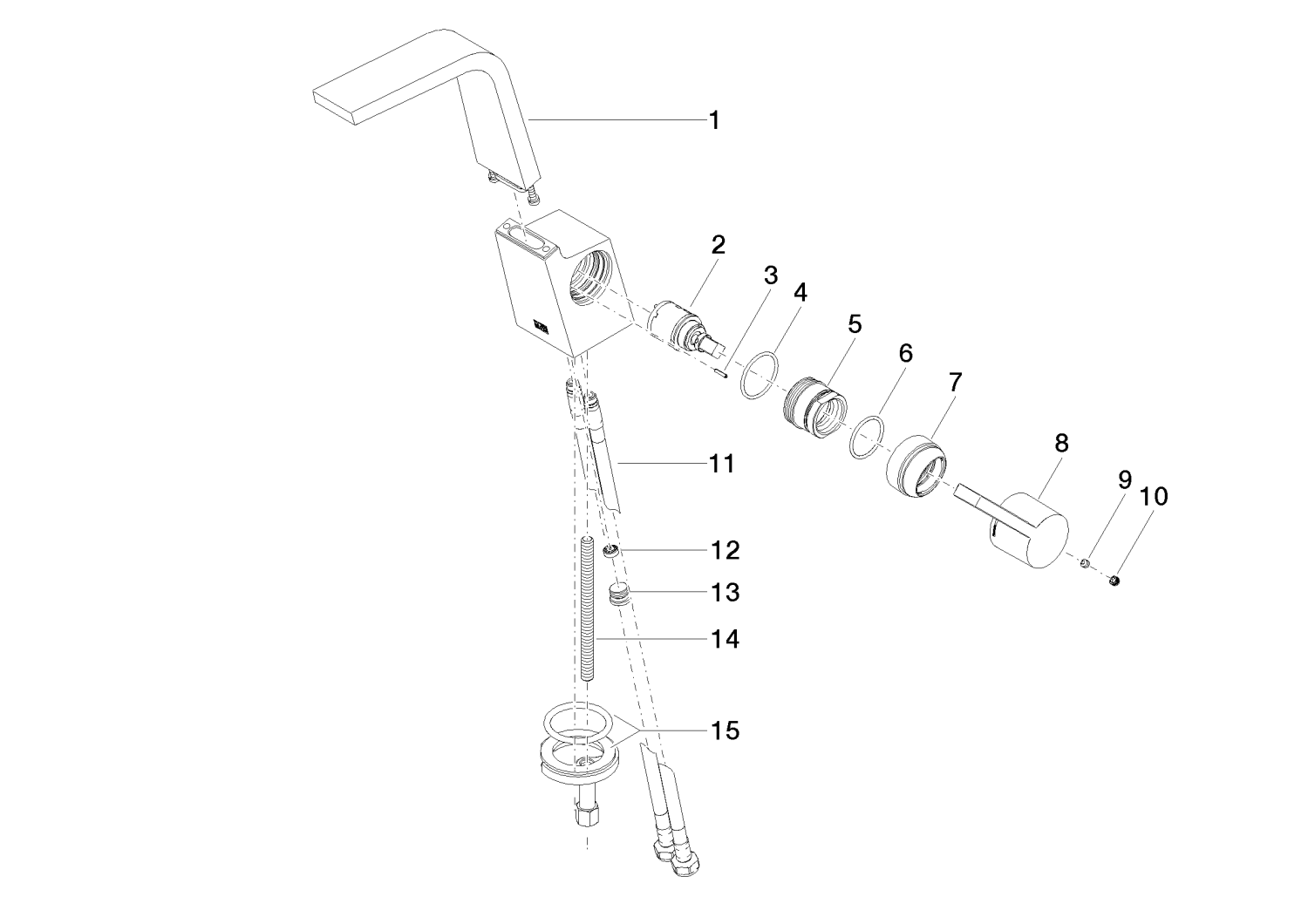 CL.1 Eengreeps wastafelmgkrn z.afvoer. Dark Chrome Dornbracht