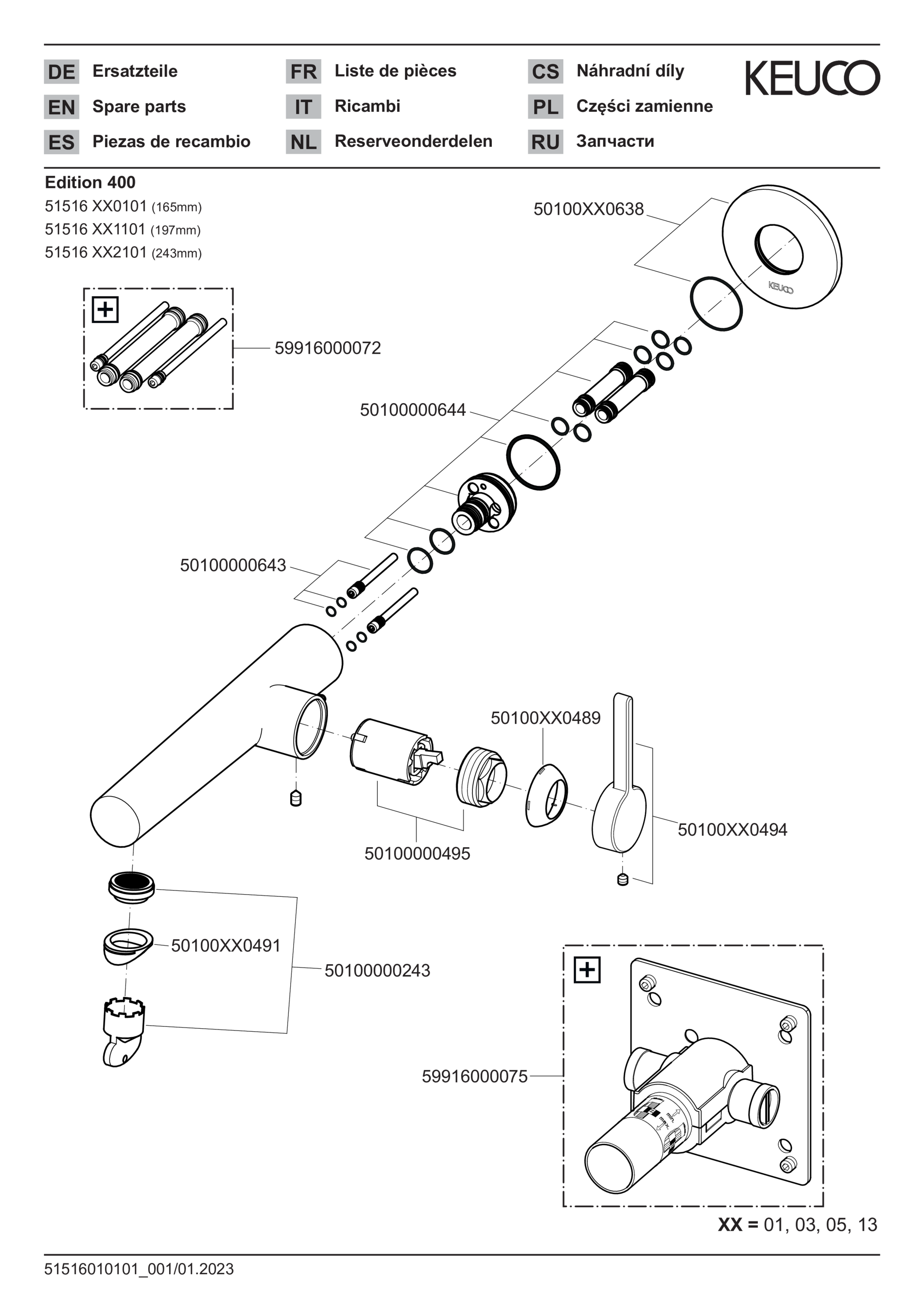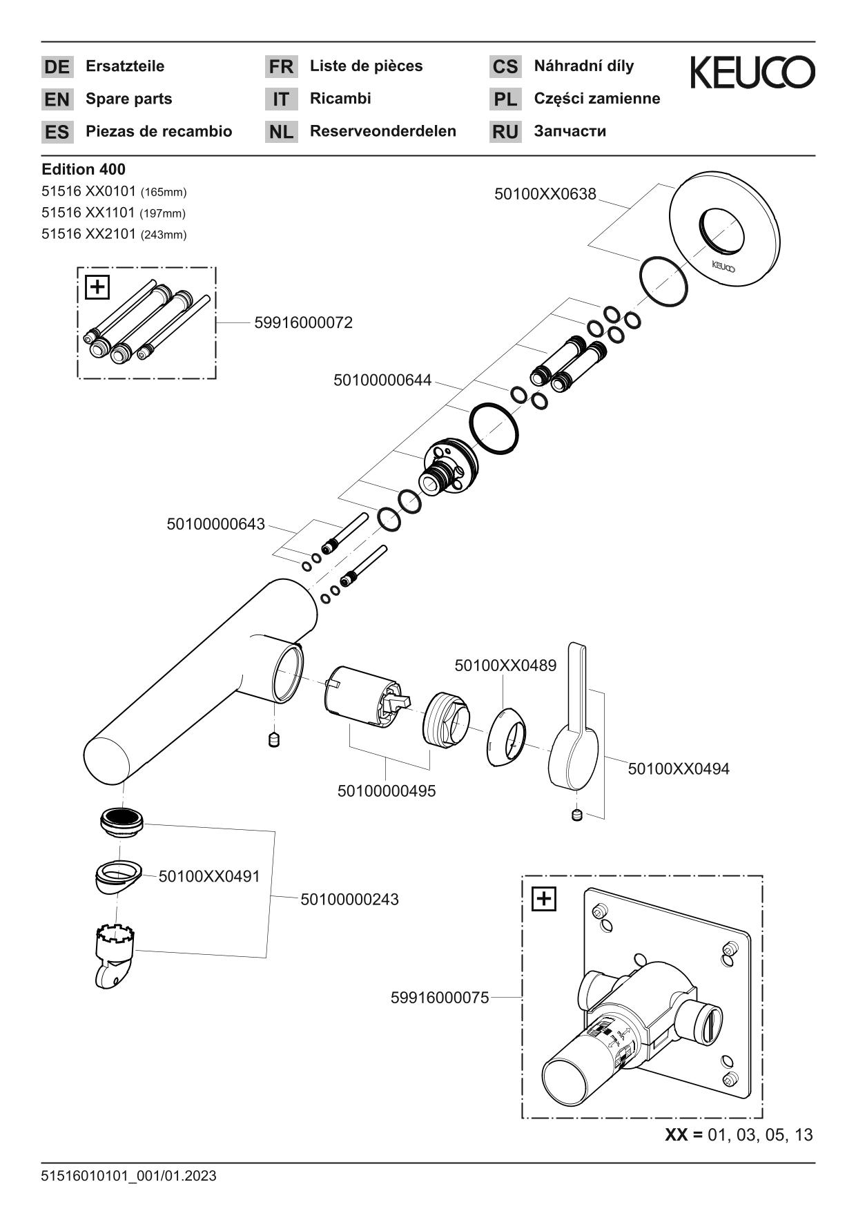 1-hendel wastafelmengkraan UP wandm uit. 165mm zwchr 51516130101 KEUCO