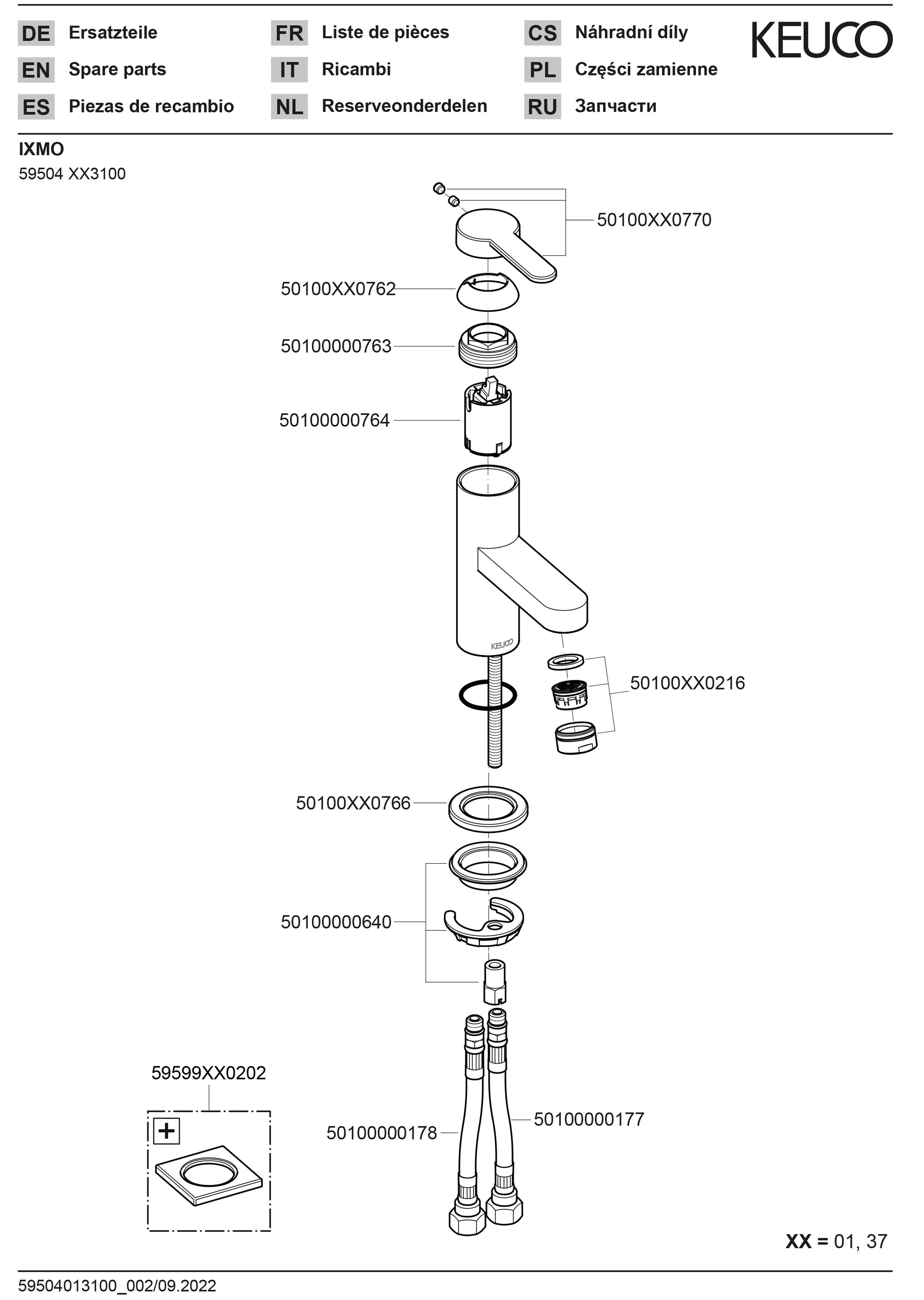1-hendel wastafelmengkraan 60 /afvoergarn/IXMO Flat/rond rood goud geborsteld KEUCO