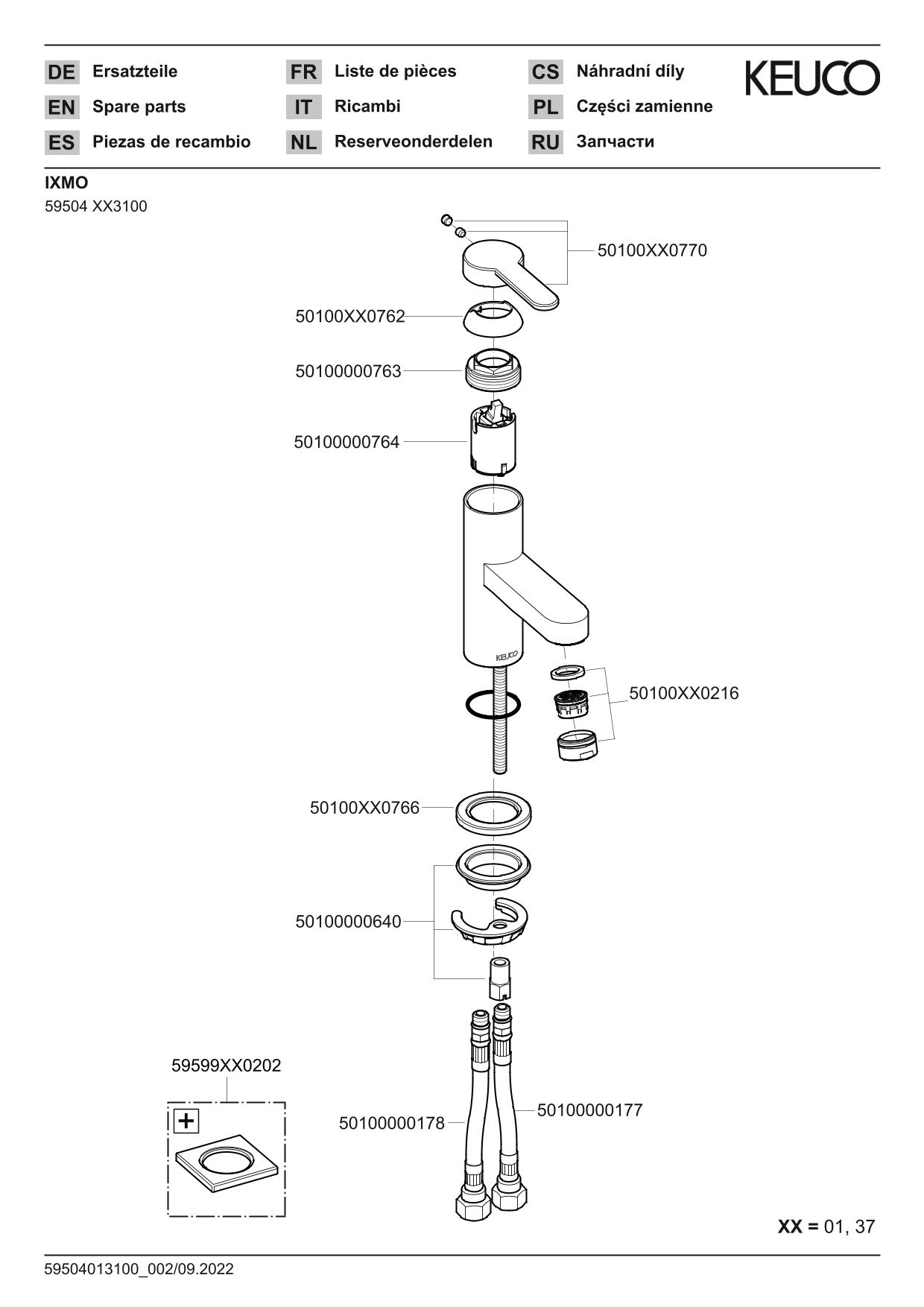1-hendel mengkraan 60 IXMO Flat rozet rond/vierkant verchrd KEUCO