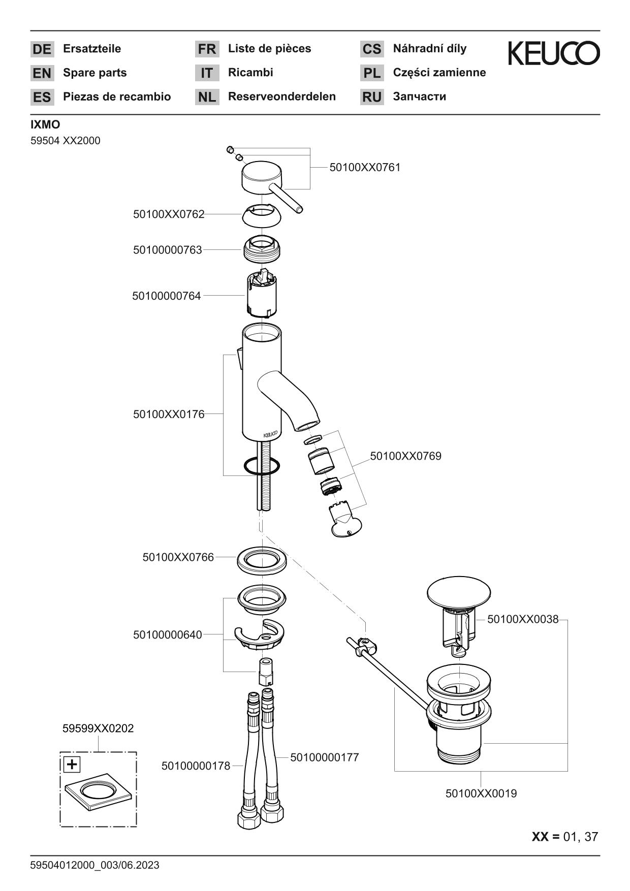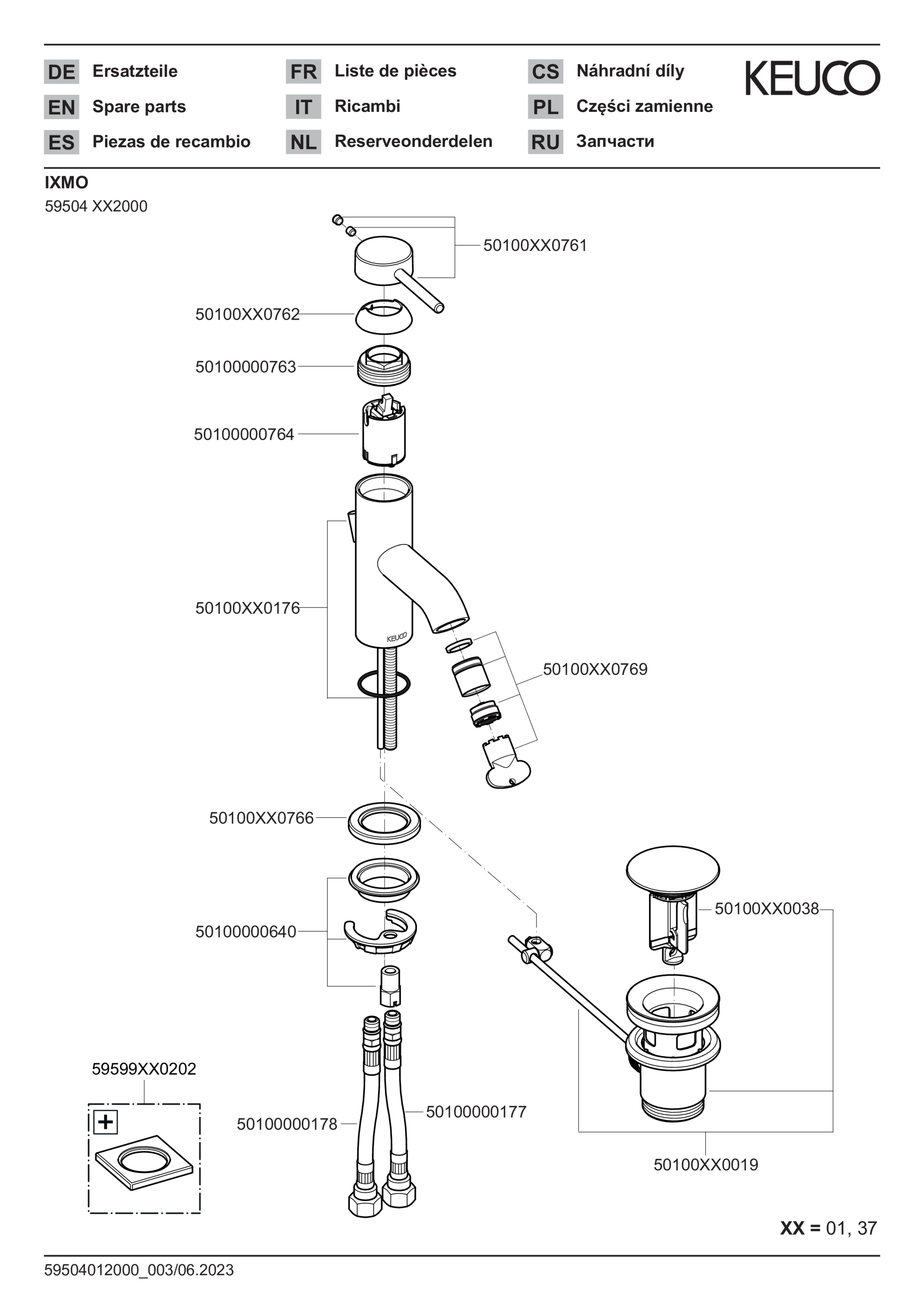 1-hendel mengkraan 60 m/waste IXMO Soft rozet rond/vierkant KEUCO