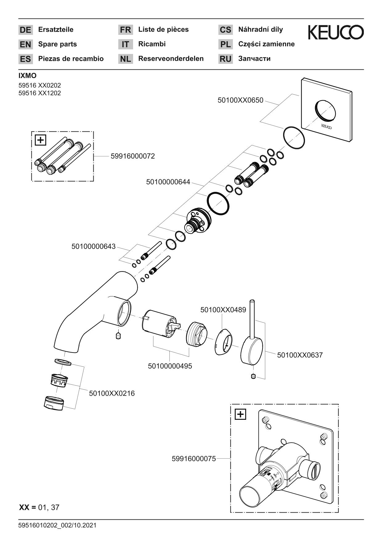 1-hendel mengkraan OPB rozet vierk.voorsprong 225mm IXMO KEUCO