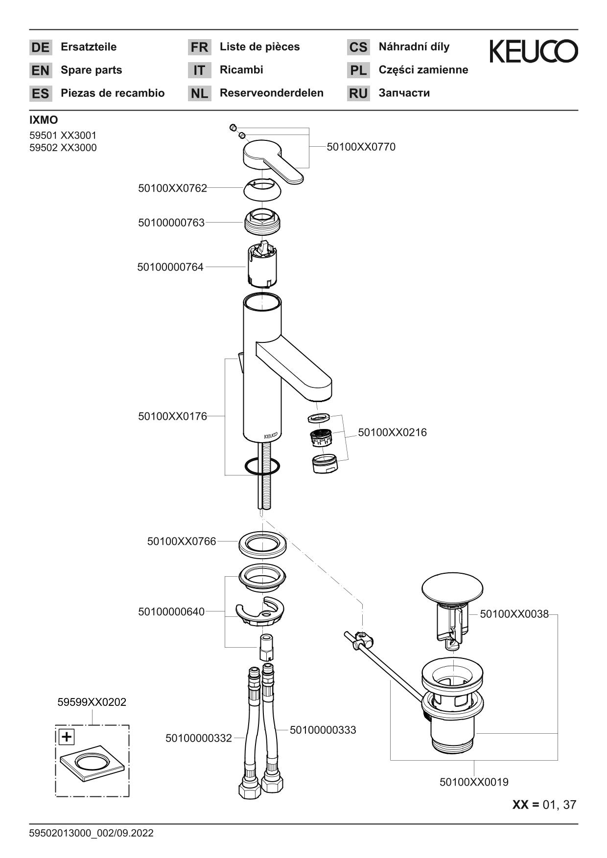 1-hendel mengkraan 100 m/waste IXMO Flat rozet 59502373000 KEUCO