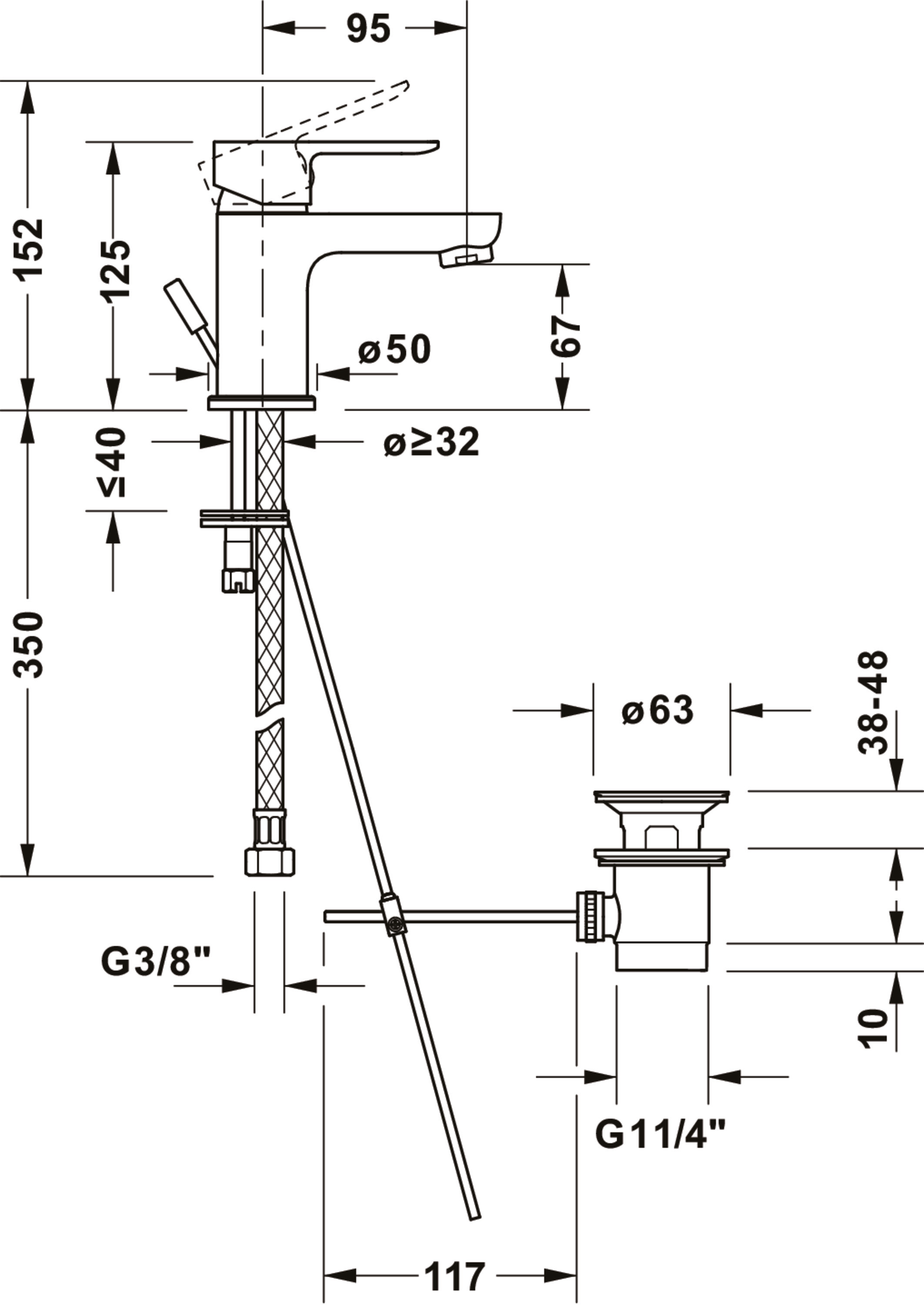 • Opbouwhoogte onderkant kraanmondstuk: 67 mm