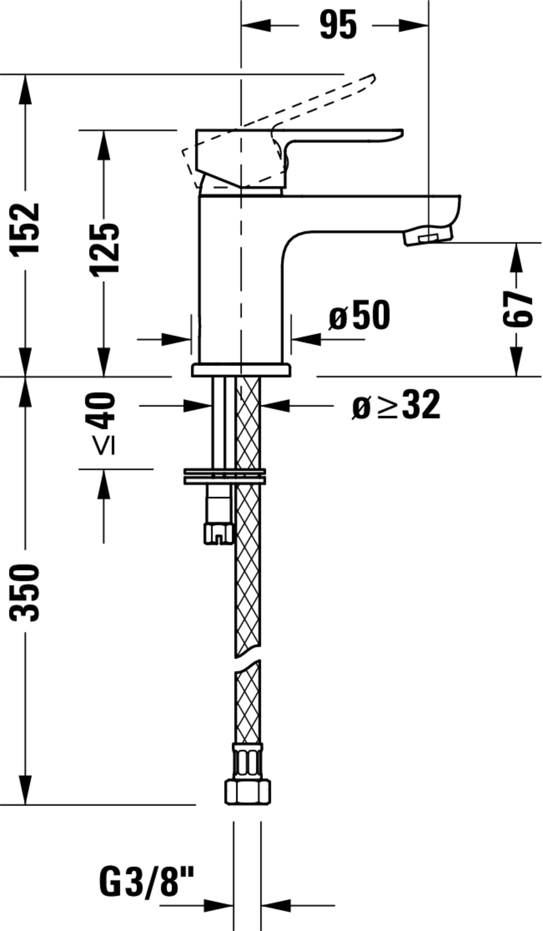 - Opbouwhoogte onderkant kraanmondstuk: 67 mm