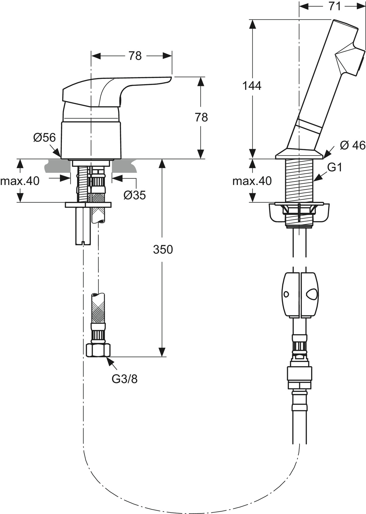 Cerasprint kappersmengkraan chroom met losse handdouche Ideal Standard