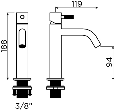 - Opbouwhoogte onderkant kraanmondstuk: 94 mm