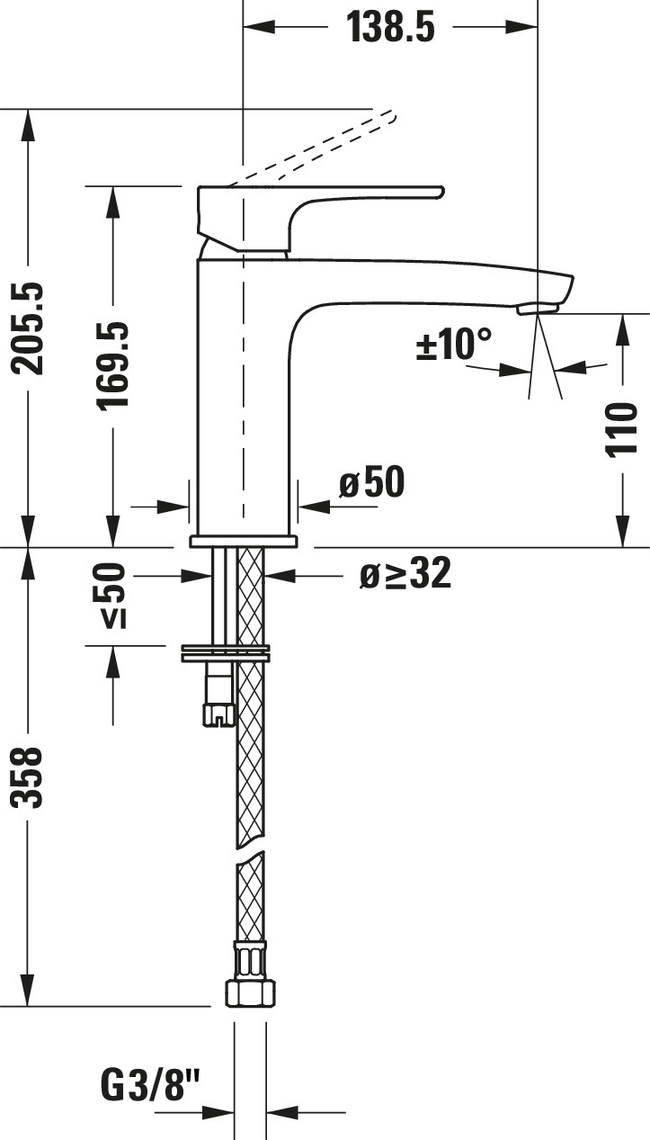 - Opbouwhoogte onderkant kraanmondstuk: 110 mm