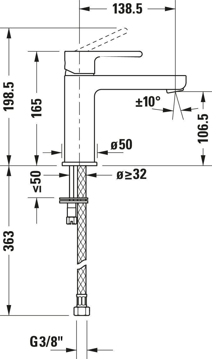 - Opbouwhoogte onderkant kraanmondstuk: 106,5 mm