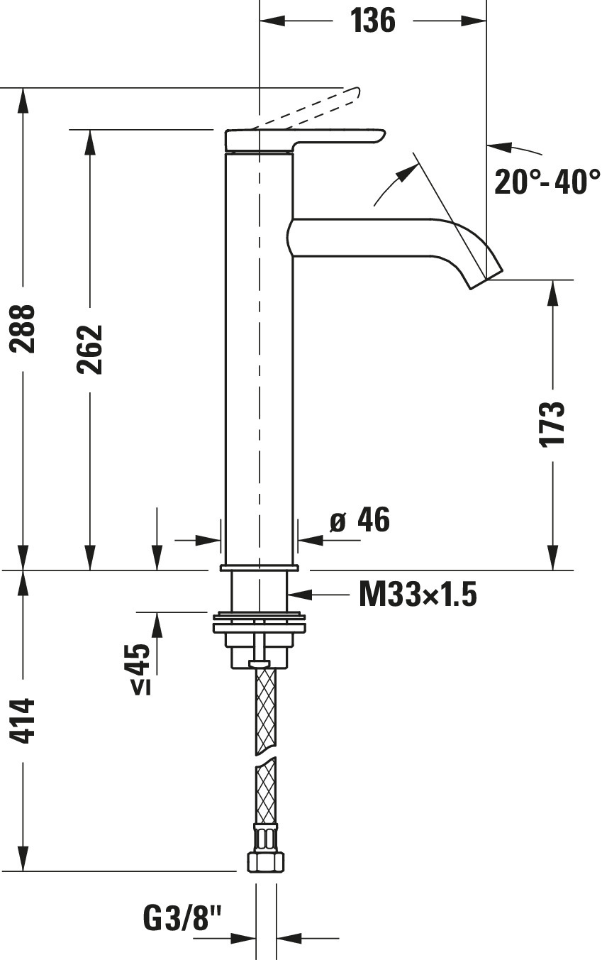 - Opbouwhoogte onderkant kraanmondstuk: 173 mm