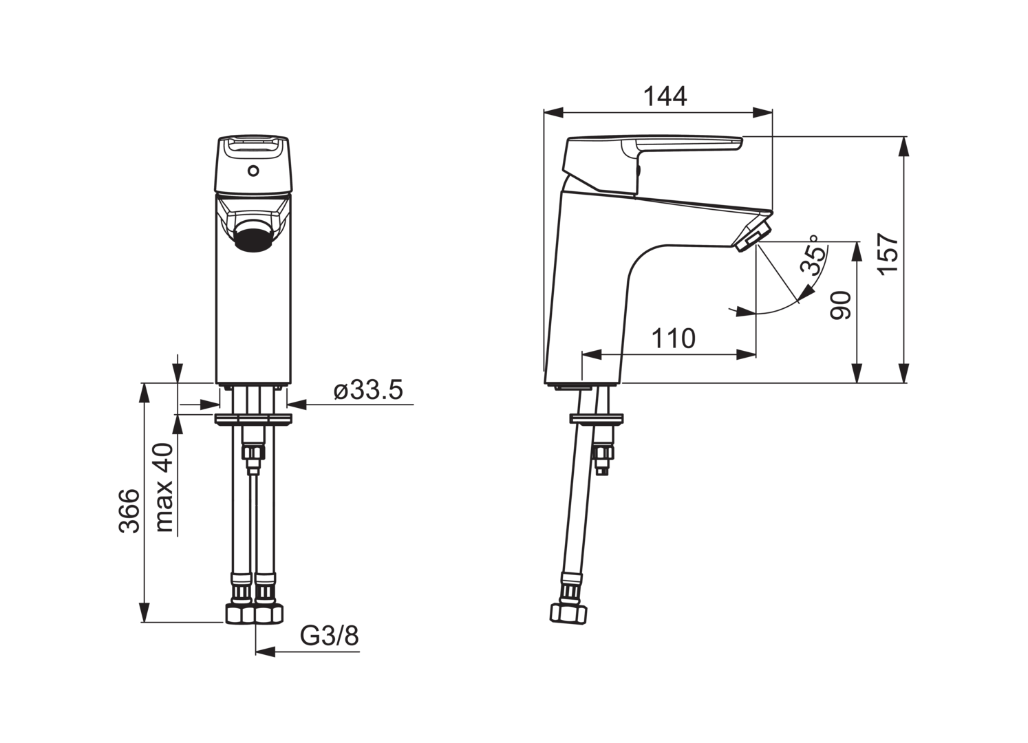 - Maat aansluiting aanvoer: 3/8" (10)