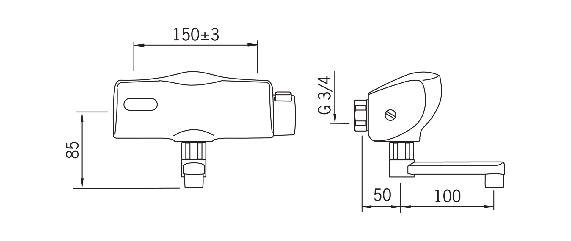 - Voorsprong uitloop: 150 mm