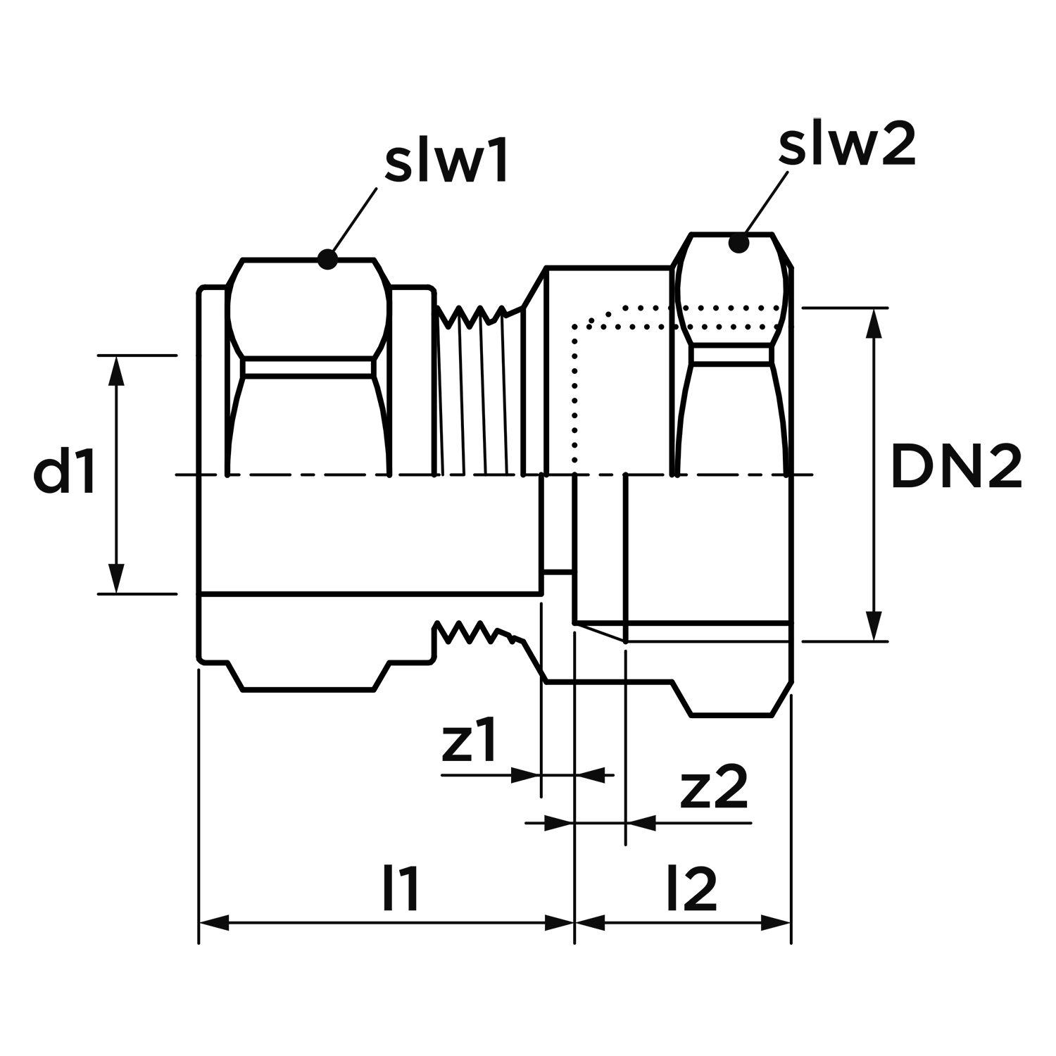 - Uitwendige buisdiameter aansluiting 2: 21,3 mm