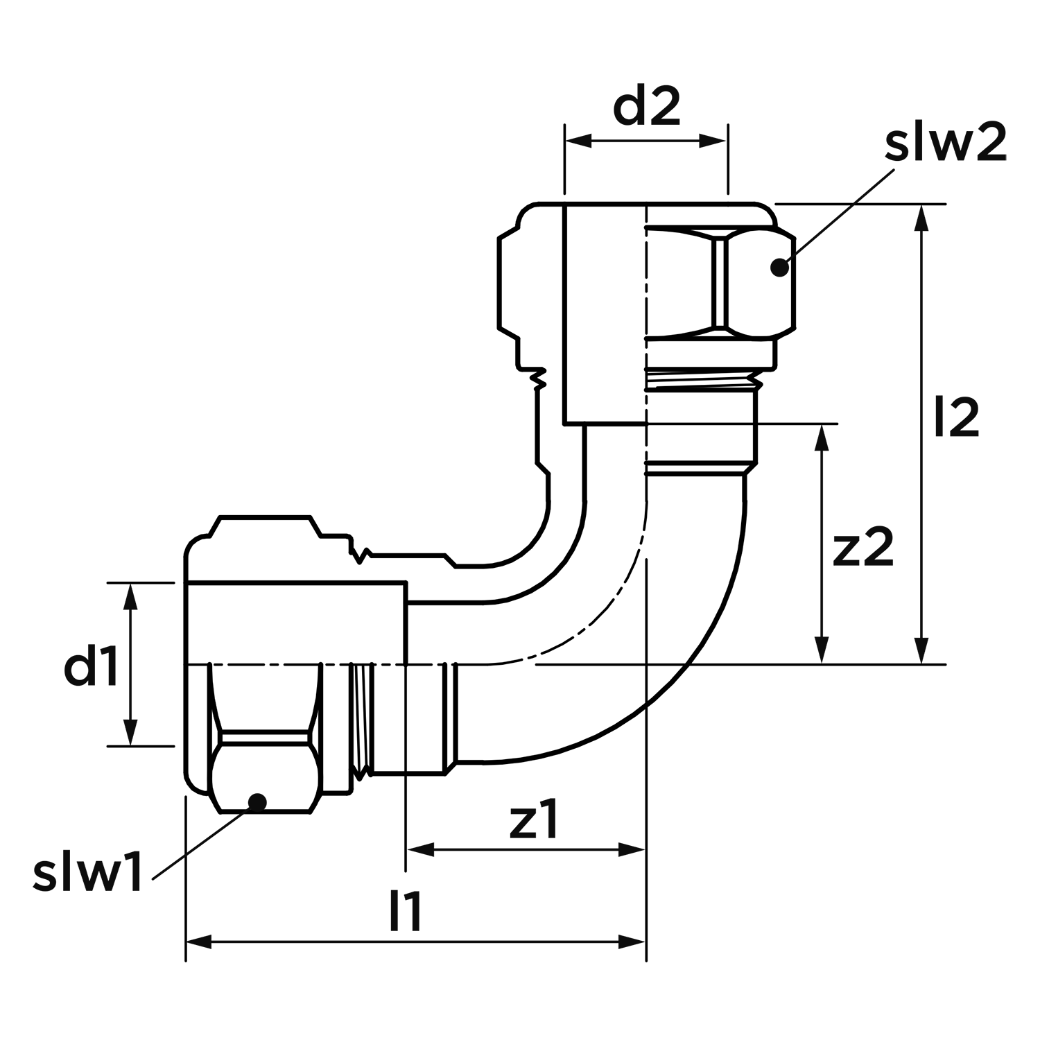- Uitwendige buisdiameter aansluiting 2: 22 mm