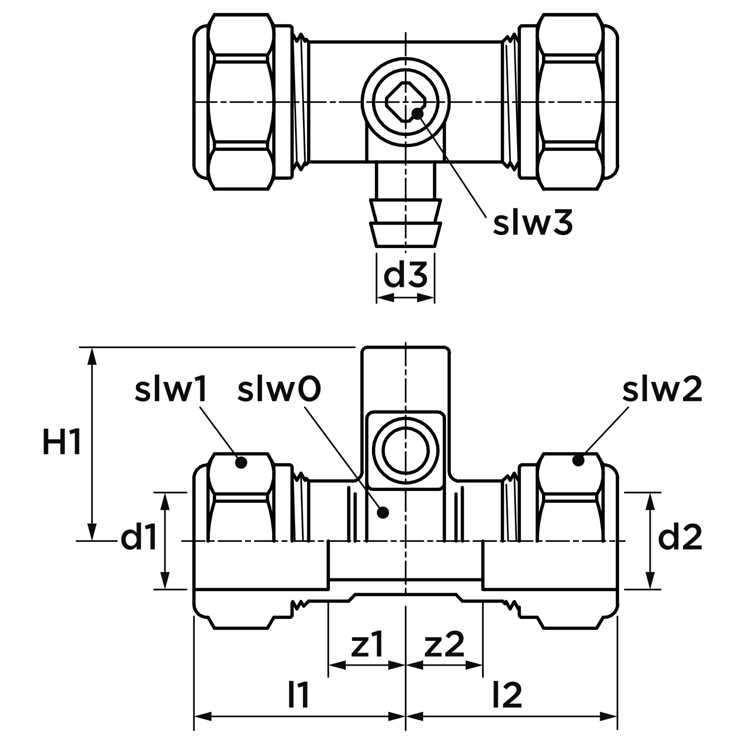 - Uitwendige buisdiameter aansluiting 2: 15 mm