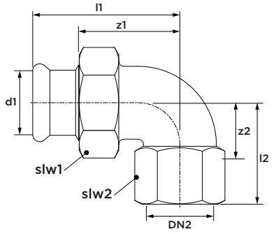 - Uitwendige buisdiameter aansluiting 2: 21,3 mm