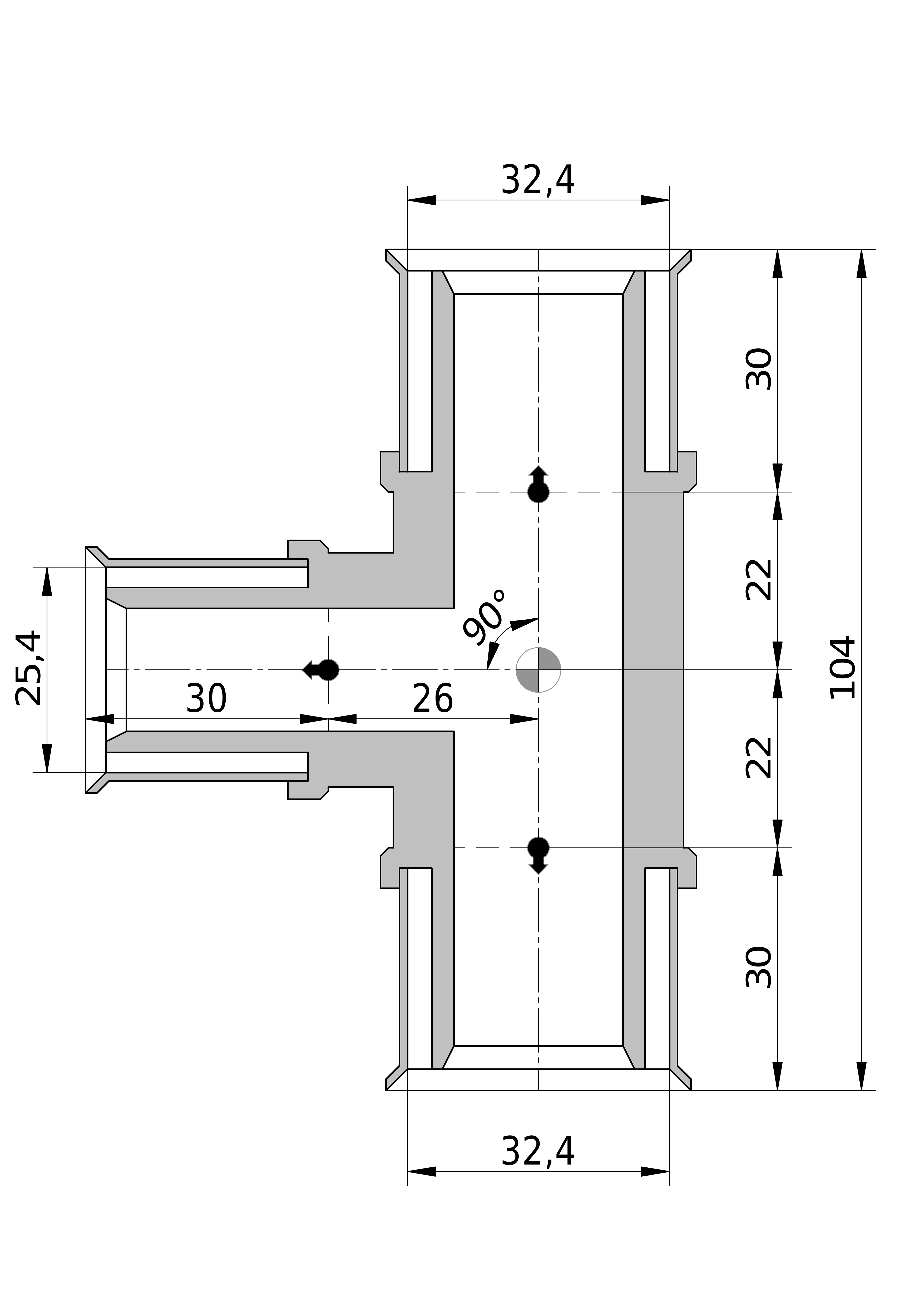 • Uitwendige buisdiameter aansluiting 3: 32 mm
