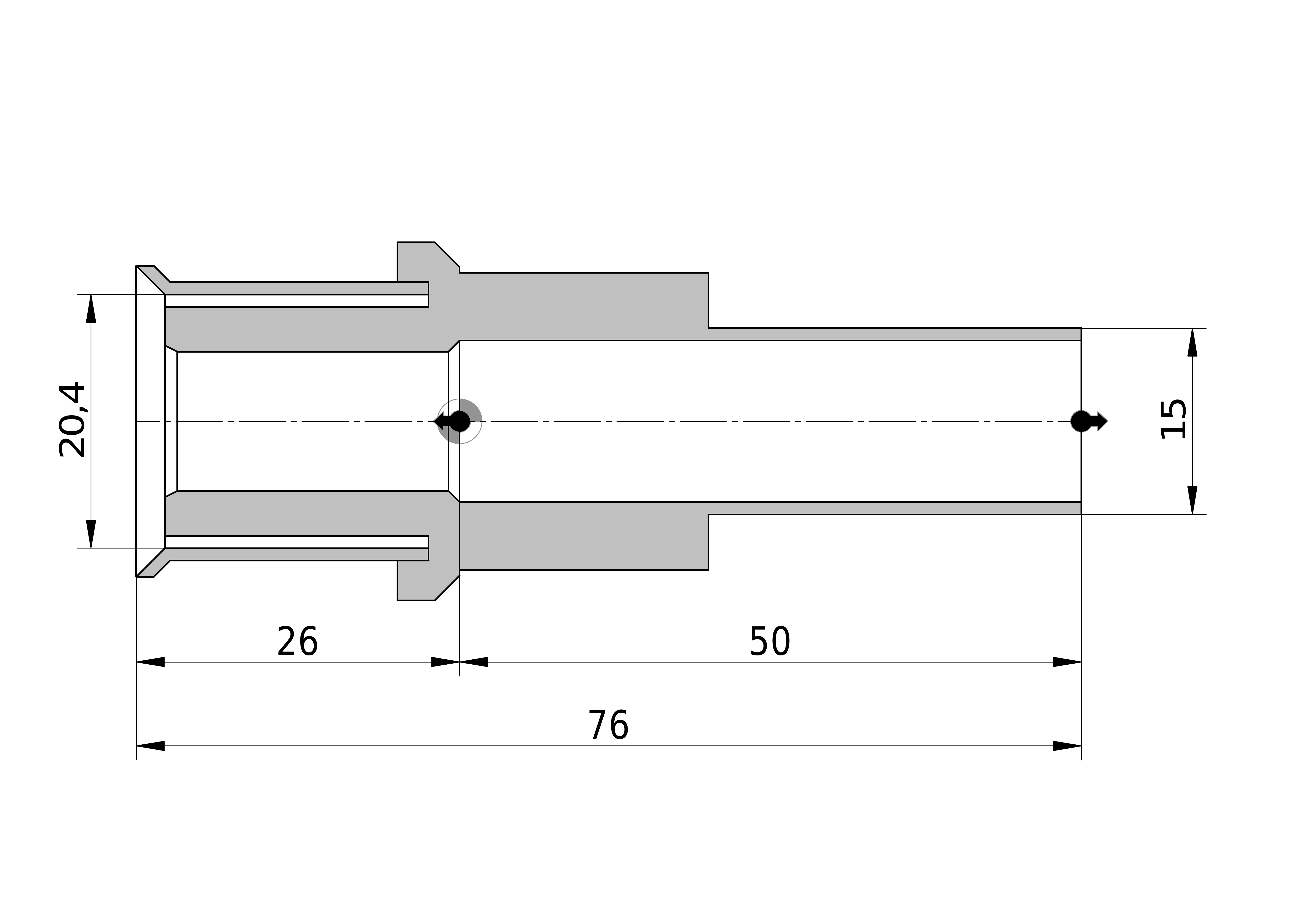 - Lengte aansluiting 2: 25,5 mm