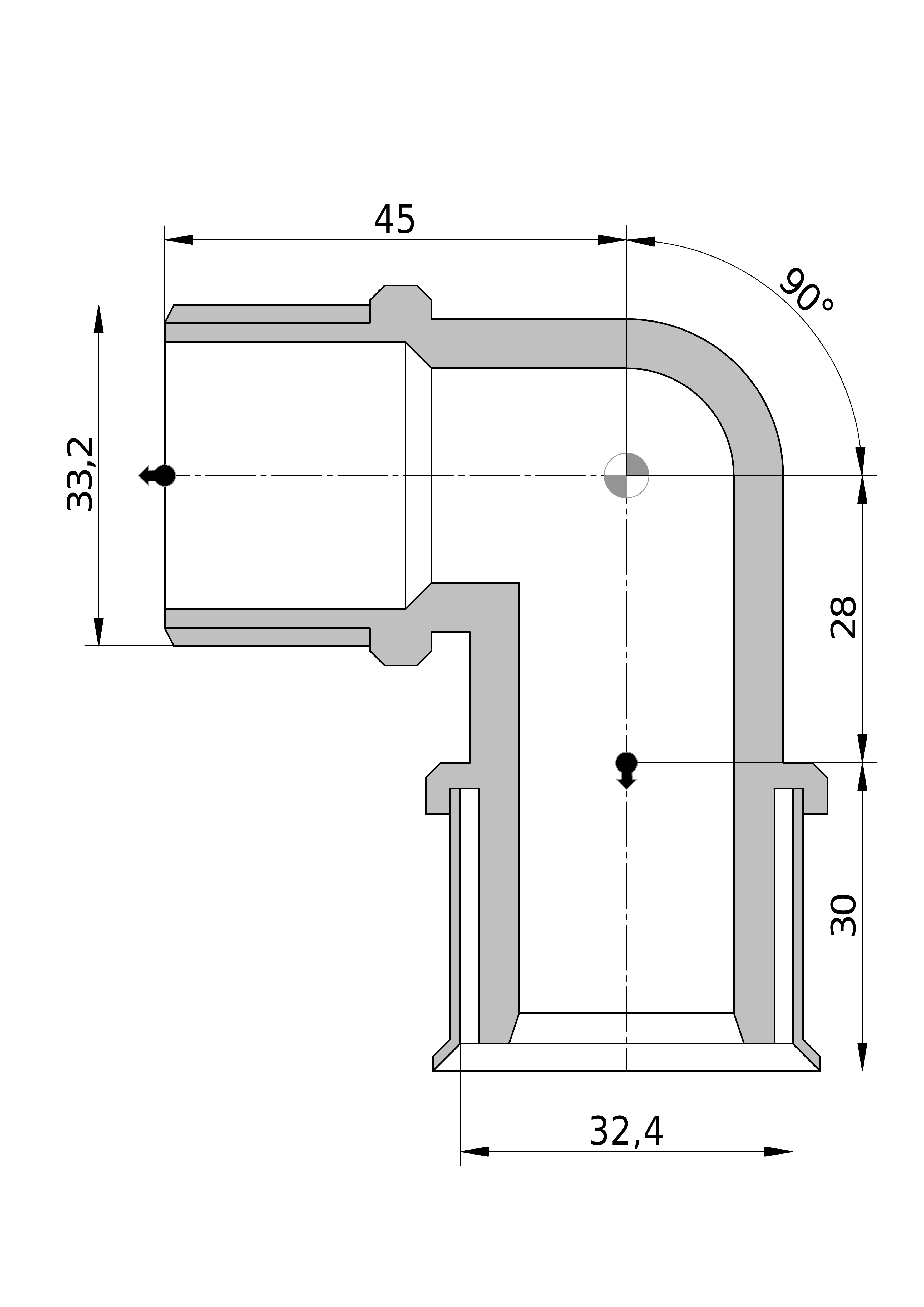 • Bochthoek: 90 °