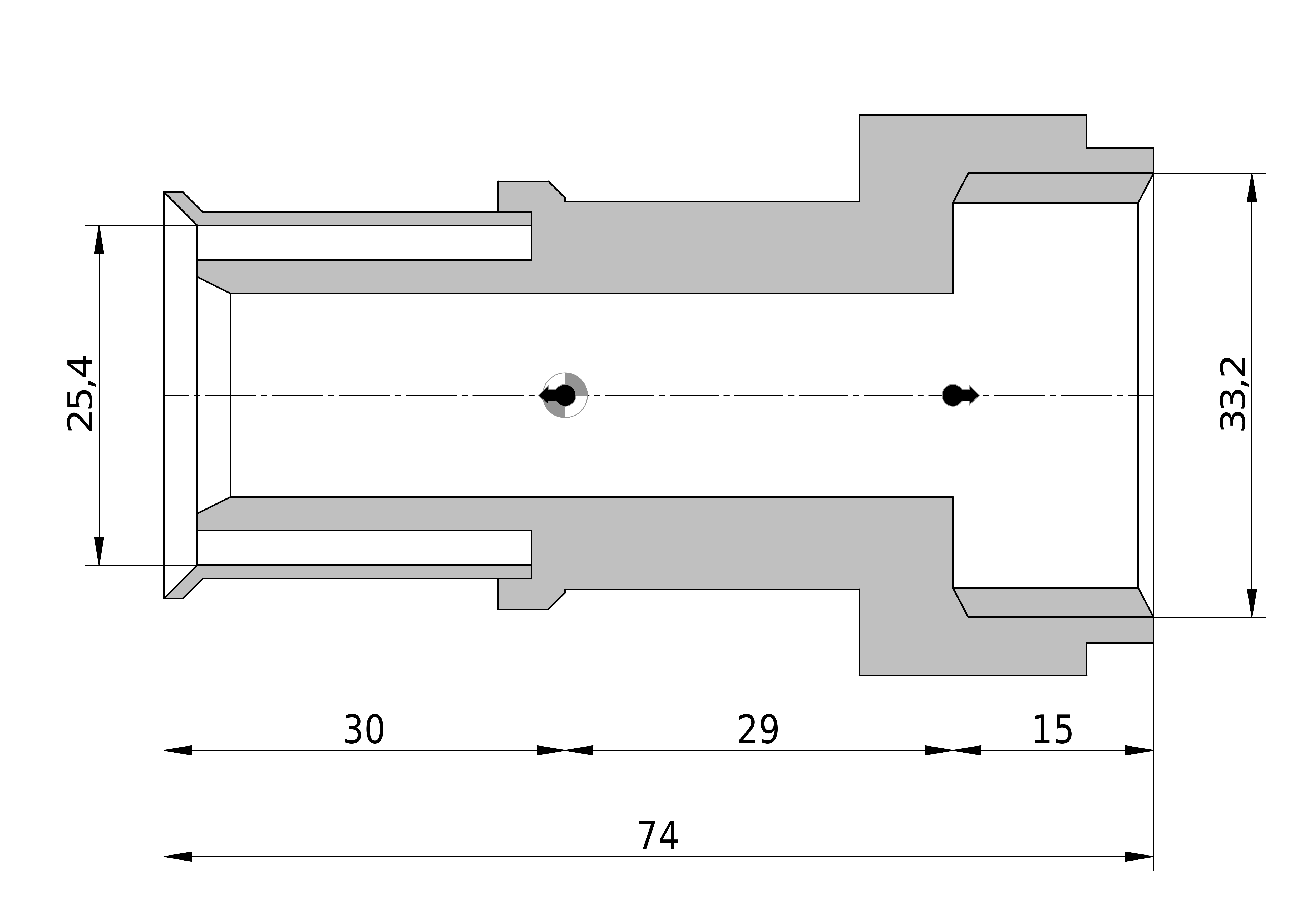 - Uitwendige buisdiameter aansluiting 2: 33,2 mm