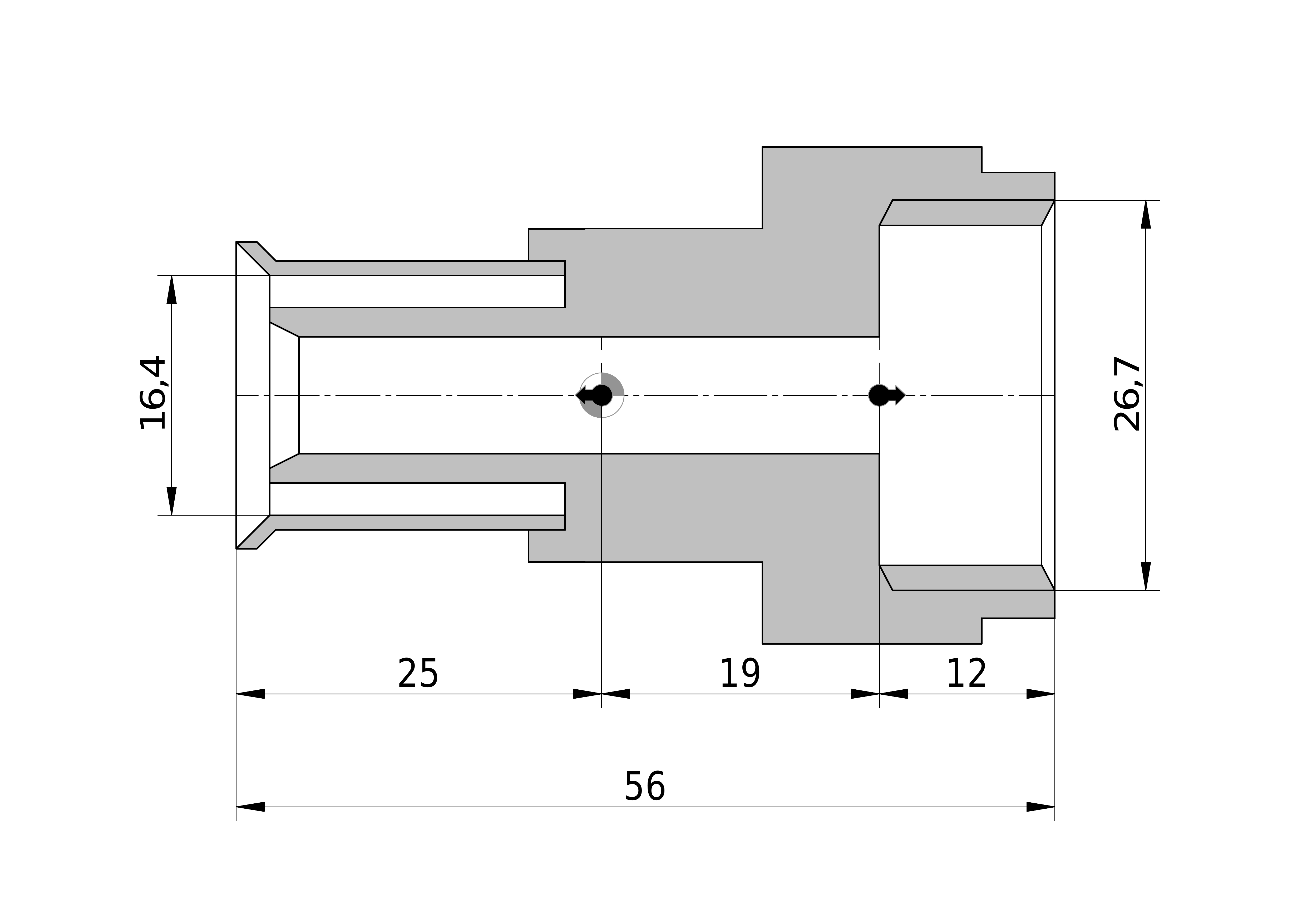 • Uitwendige buisdiameter aansluiting 2: 26,7 mm