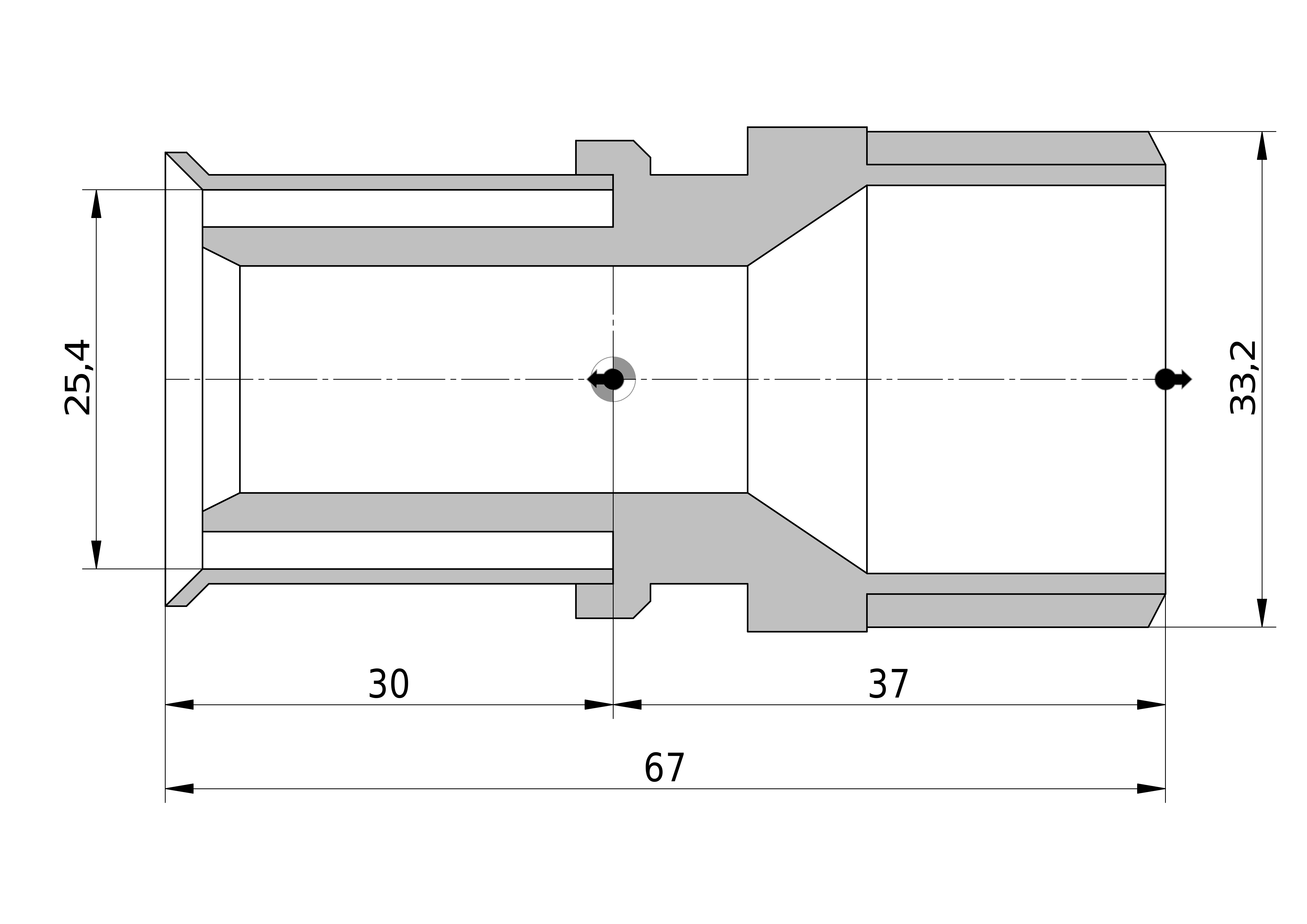 - Lengte aansluiting 1: 30,5 mm
