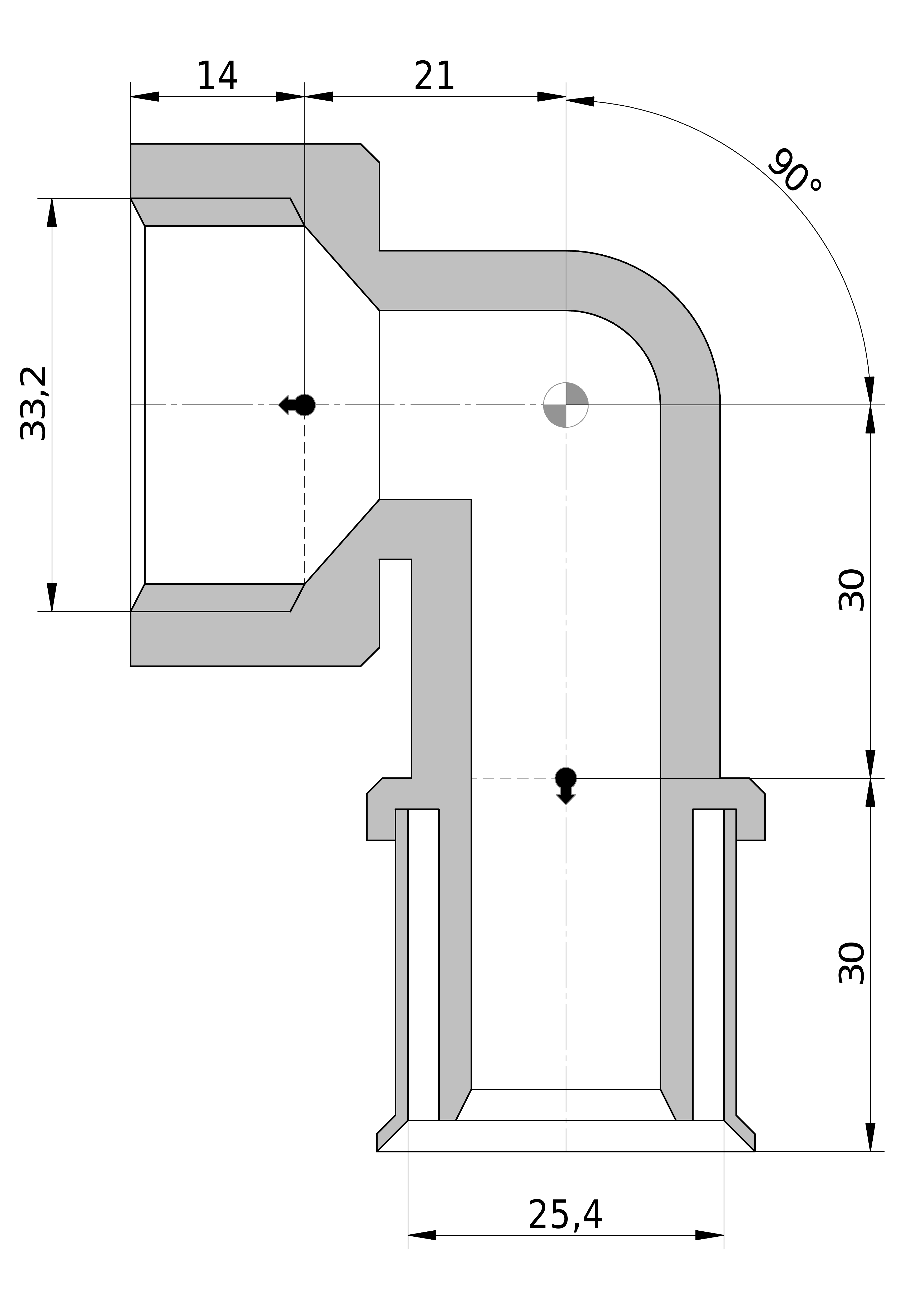 • Bochthoek: 90 °