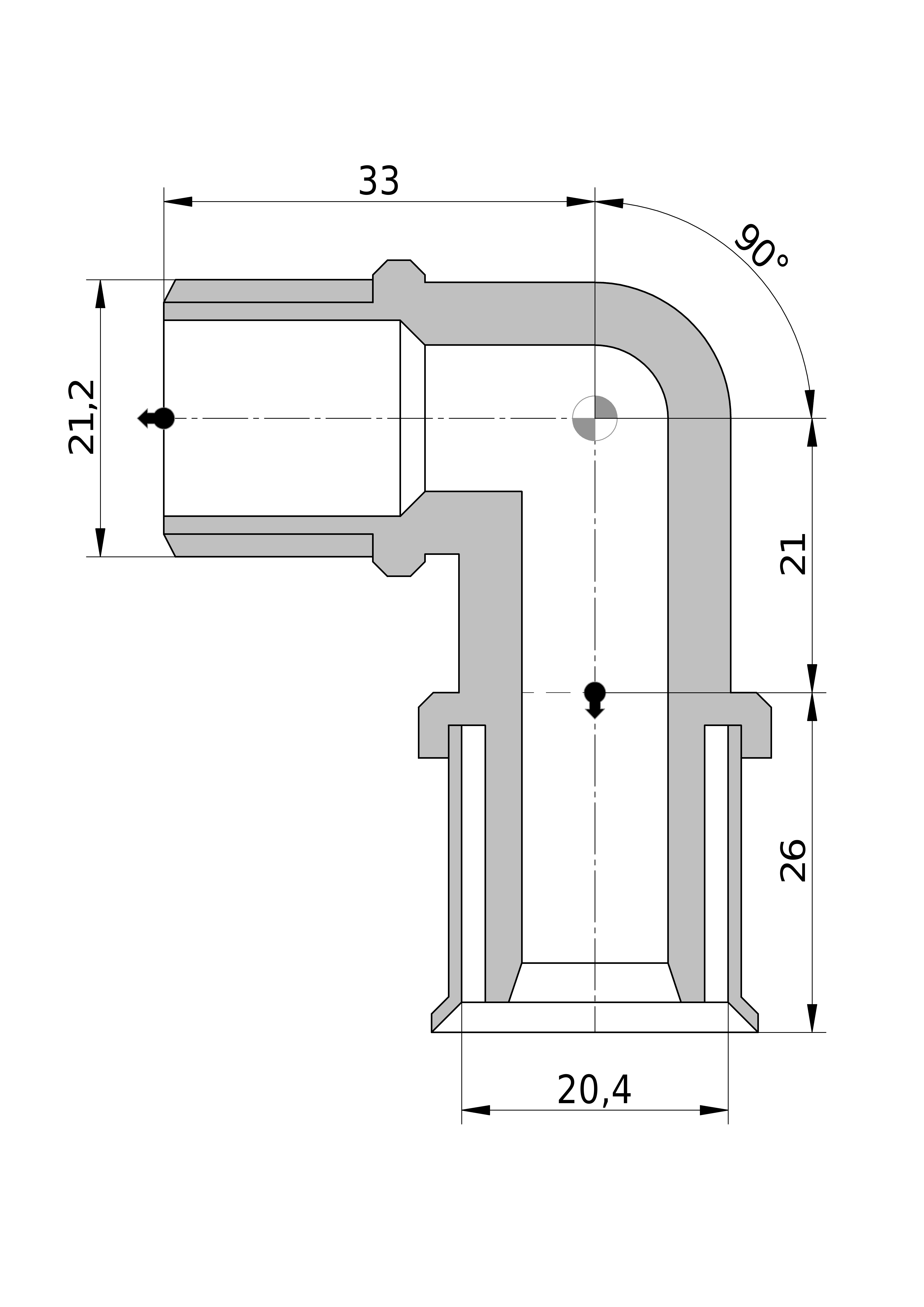 - Uitwendige buisdiameter aansluiting 2: 21,2 mm