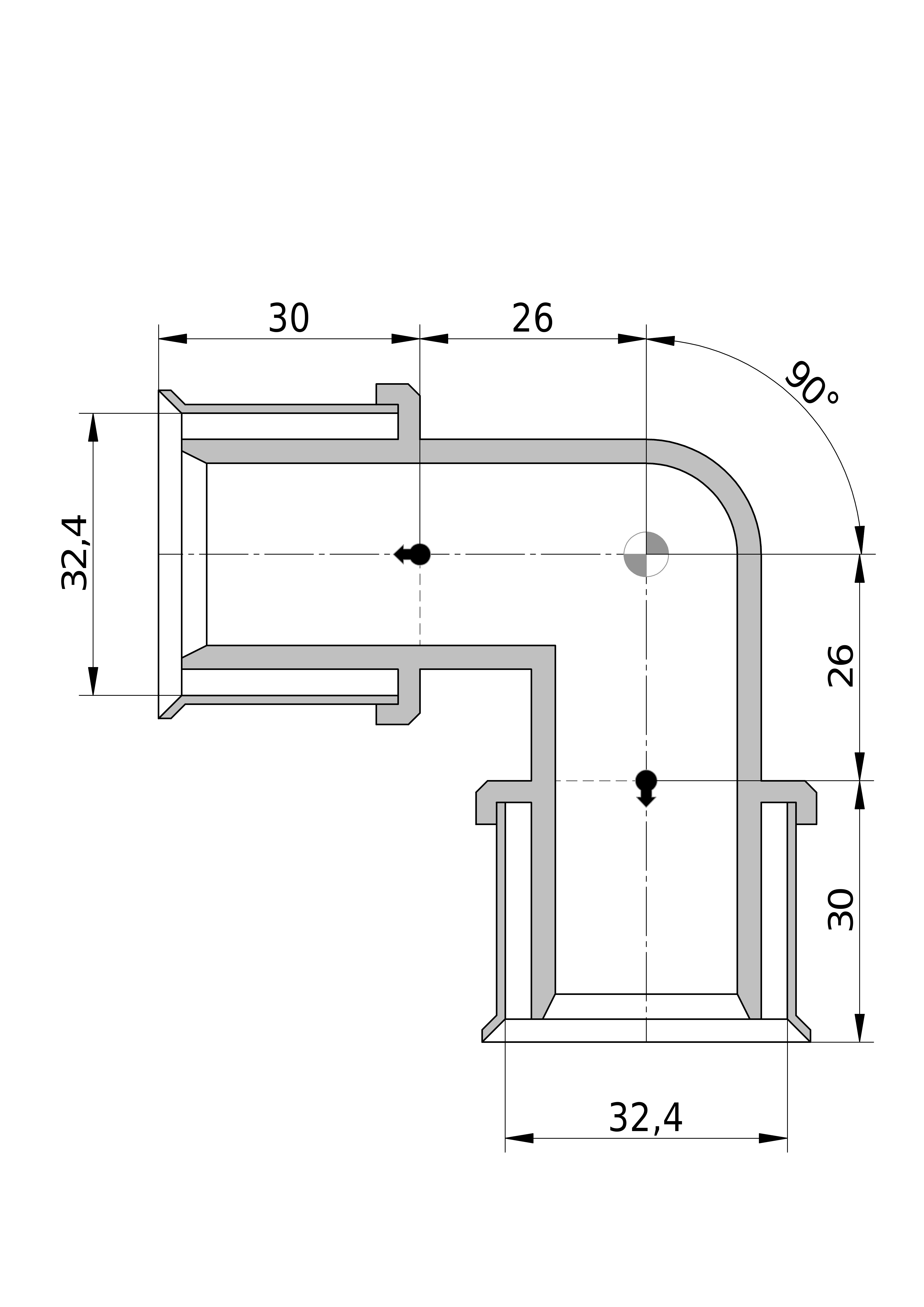 - Uitwendige buisdiameter aansluiting 2: 32 mm