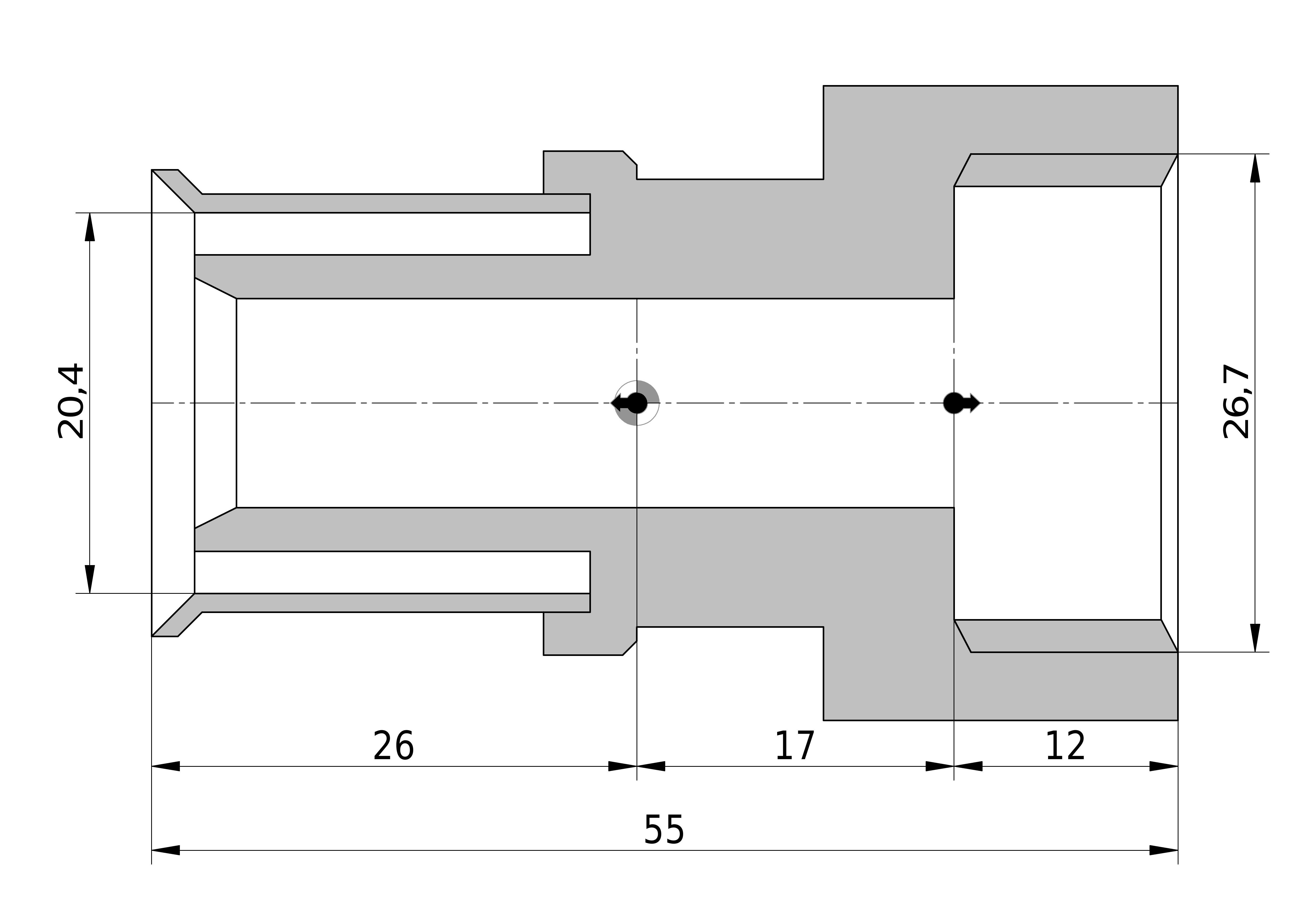 • Uitwendige buisdiameter aansluiting 2: 26,7 mm
