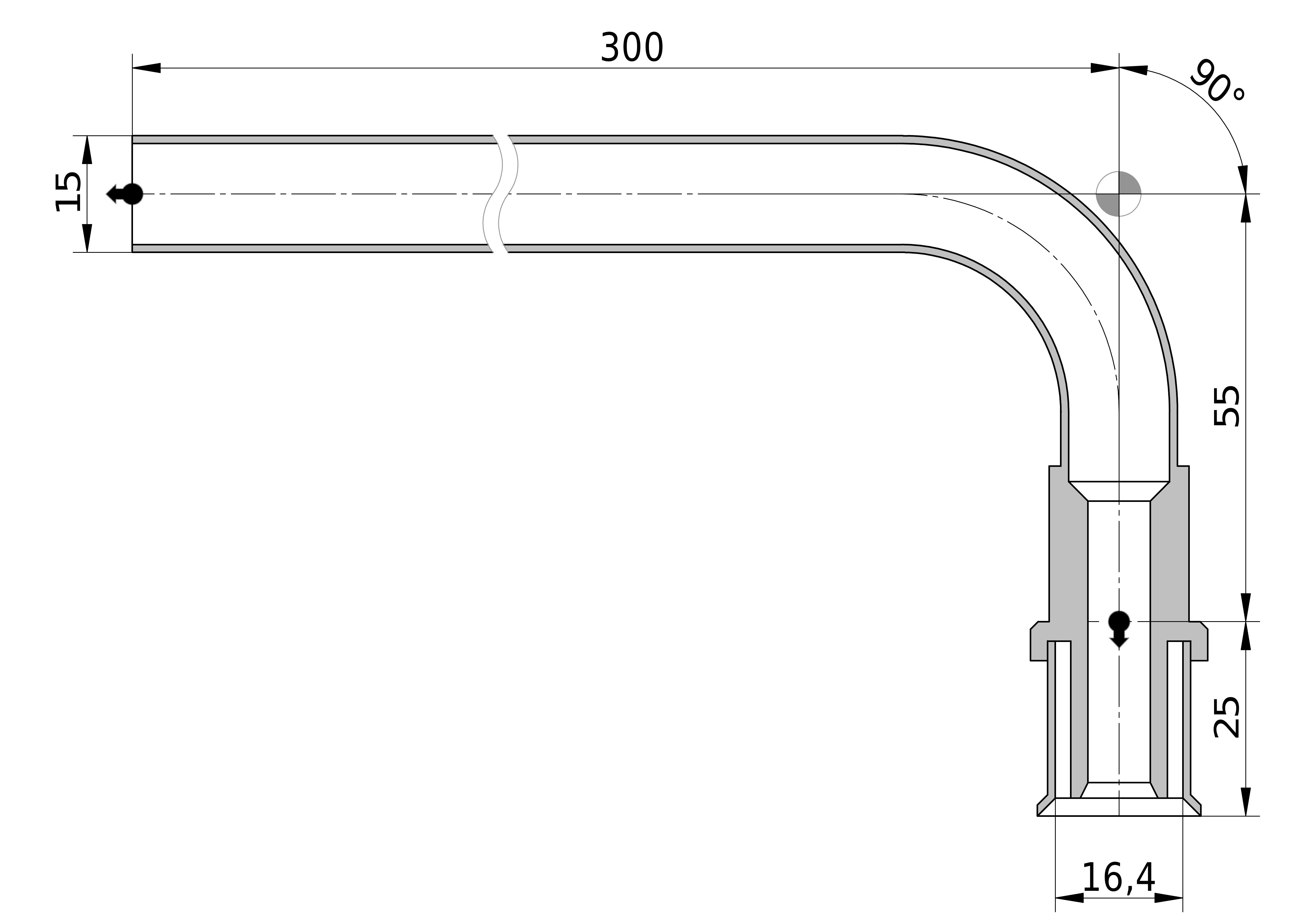 - Bochthoek: 90 °