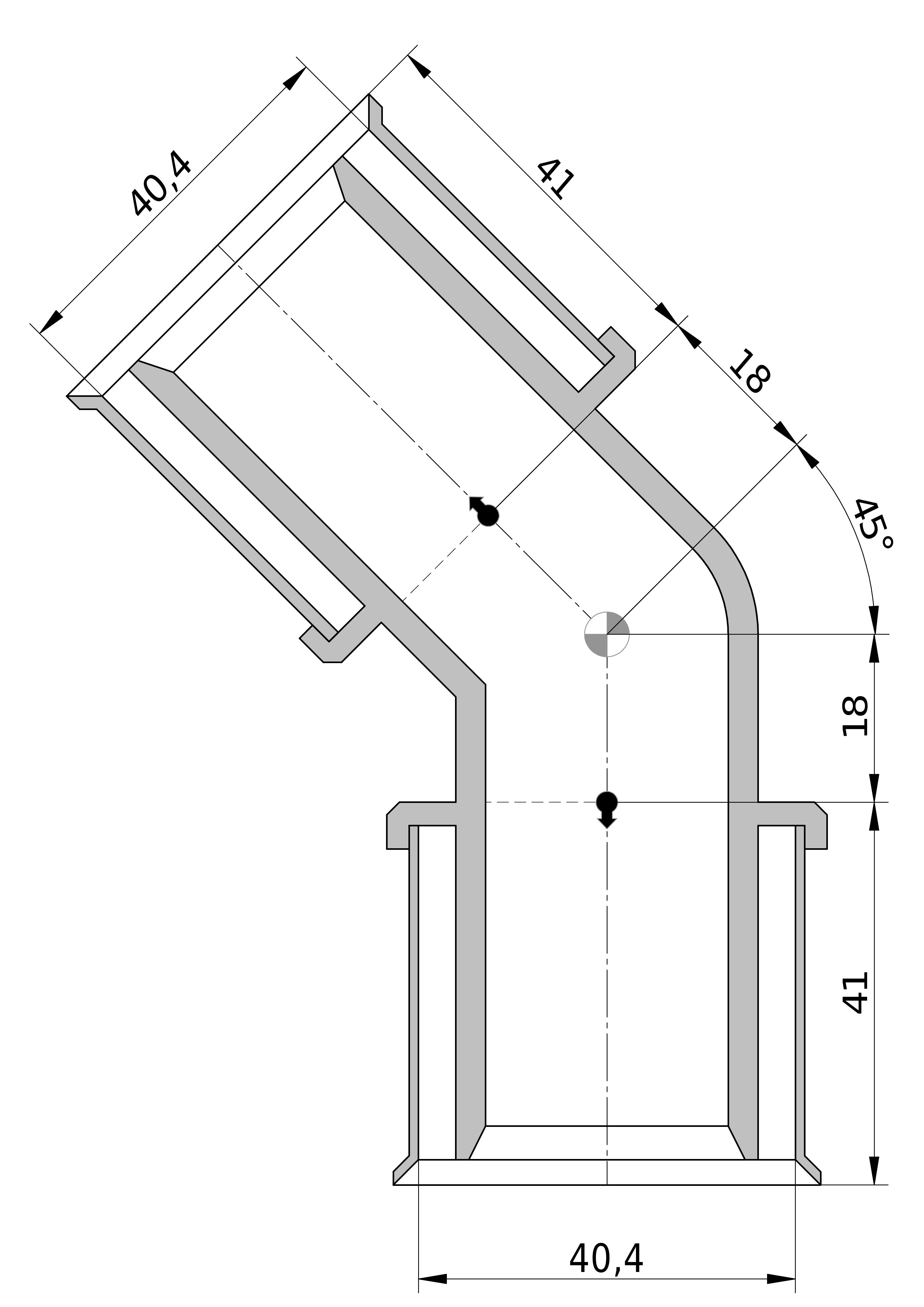 - Uitwendige buisdiameter aansluiting 2: 40 mm