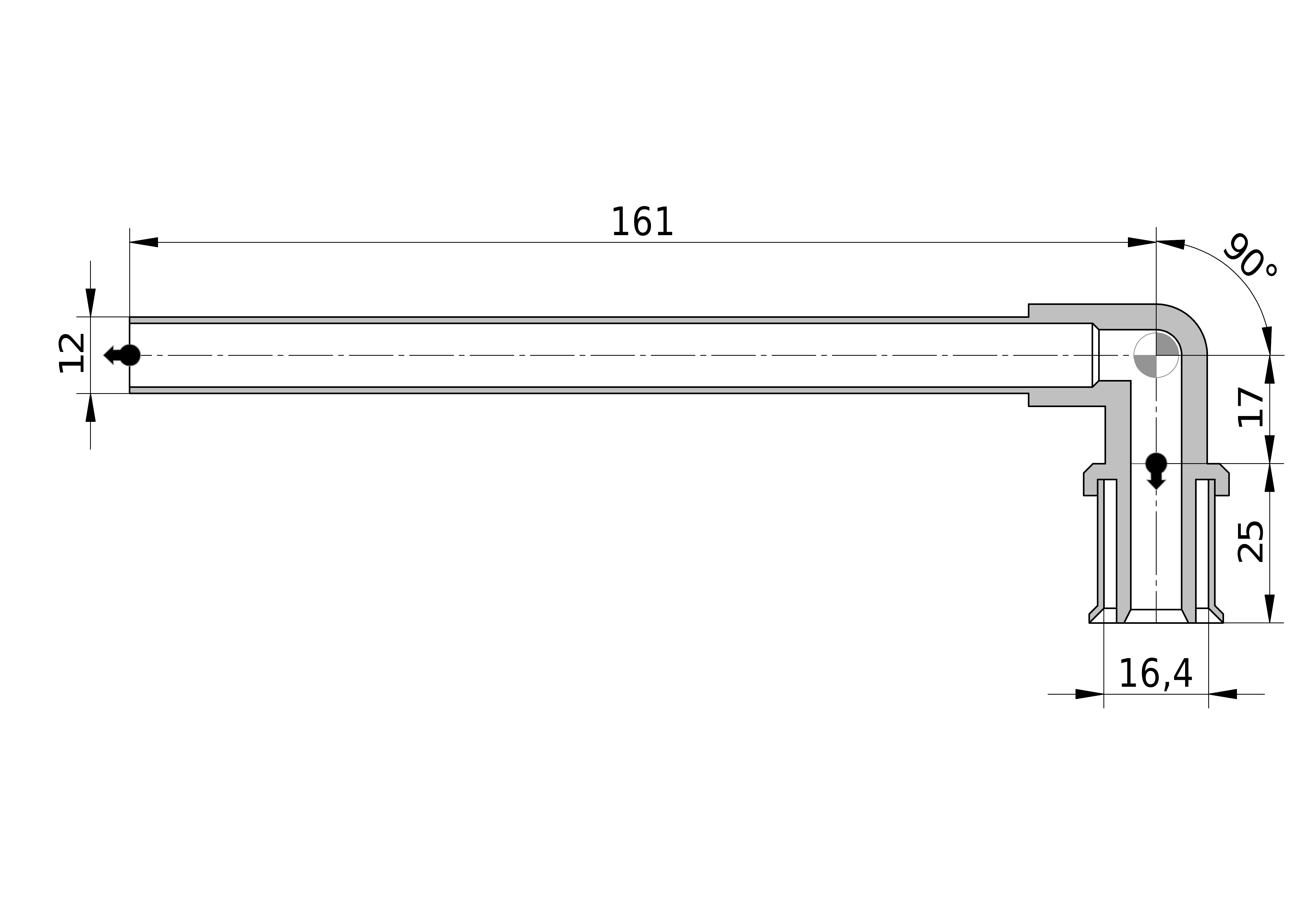 • Lengte aansluiting 2: 161 mm